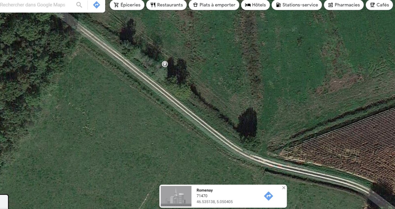 POINT n°1 : Disparition en 2020 de plus de 100 m linéaires de haies. Les 3 m d'emprise (sur le terrain de la commune ?) ont aujourd'hui été retournés par l'exploitant pour planter du maïs.