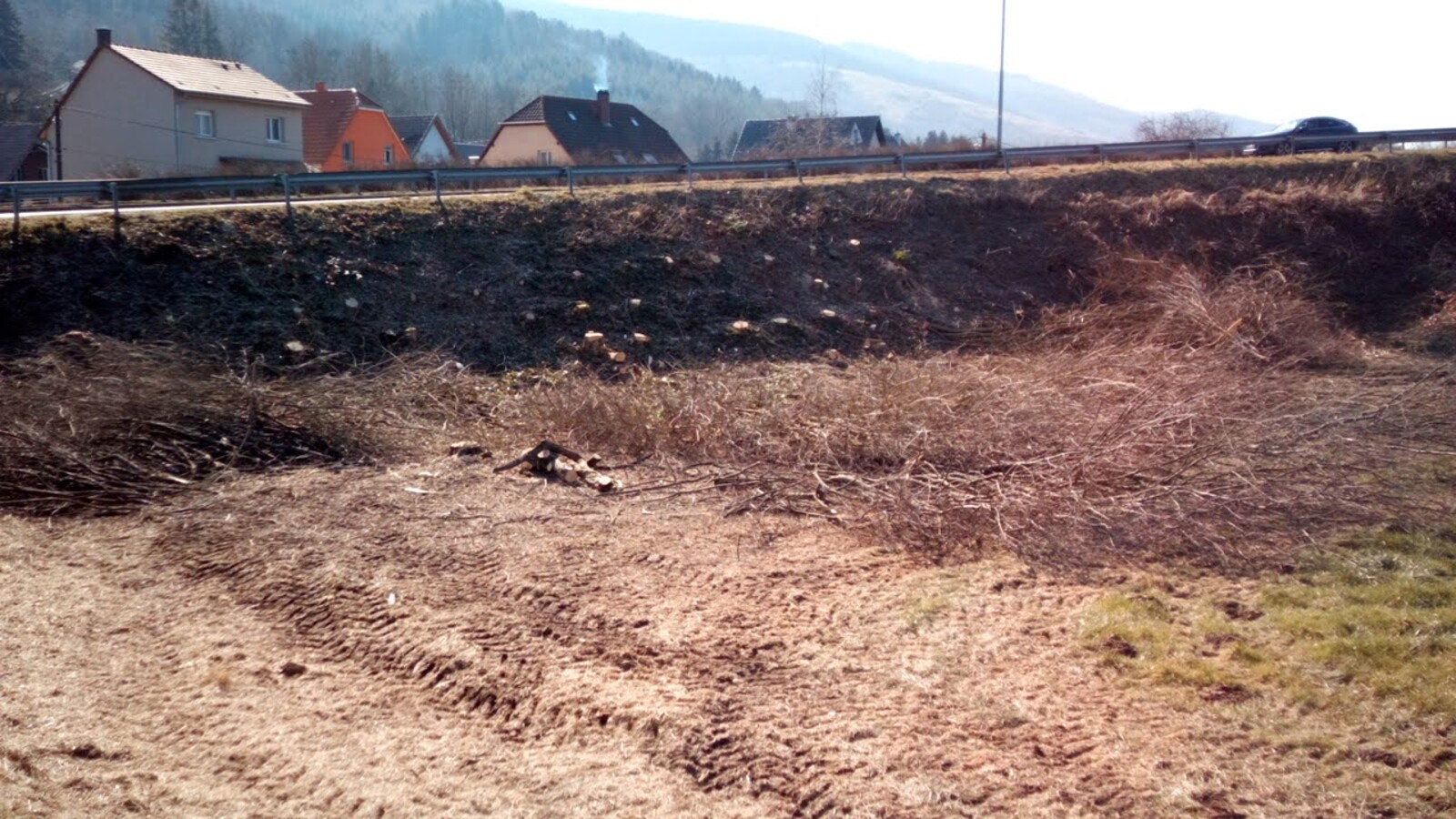 Tailles de haies sévères sur un talus routier
