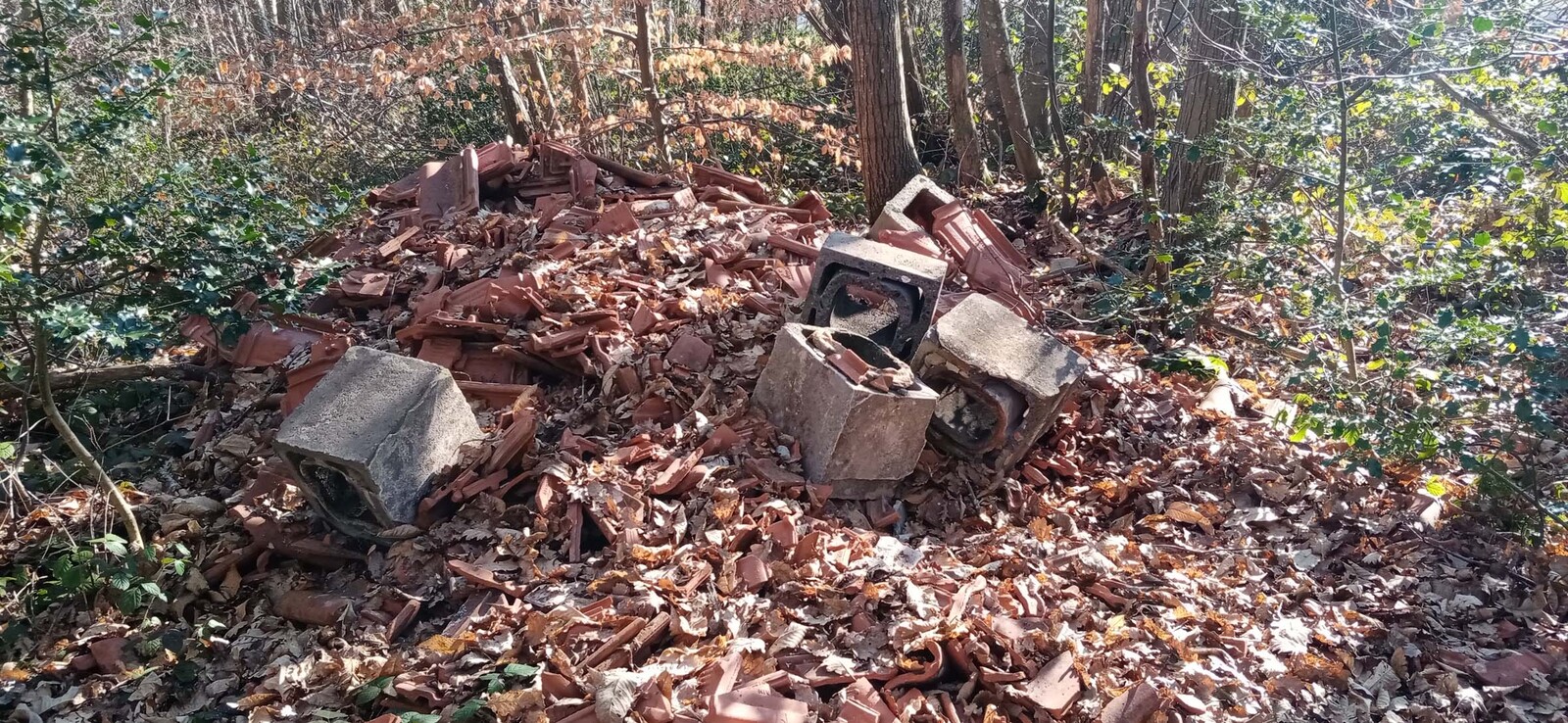 Dépot de déchets et de gravats en pleine forêt.