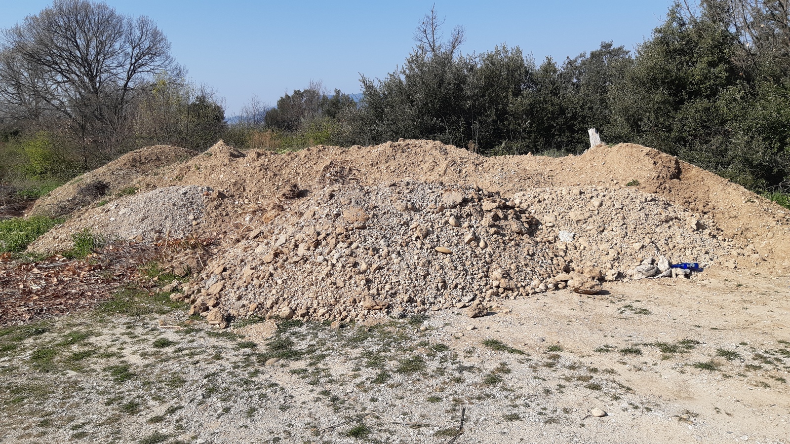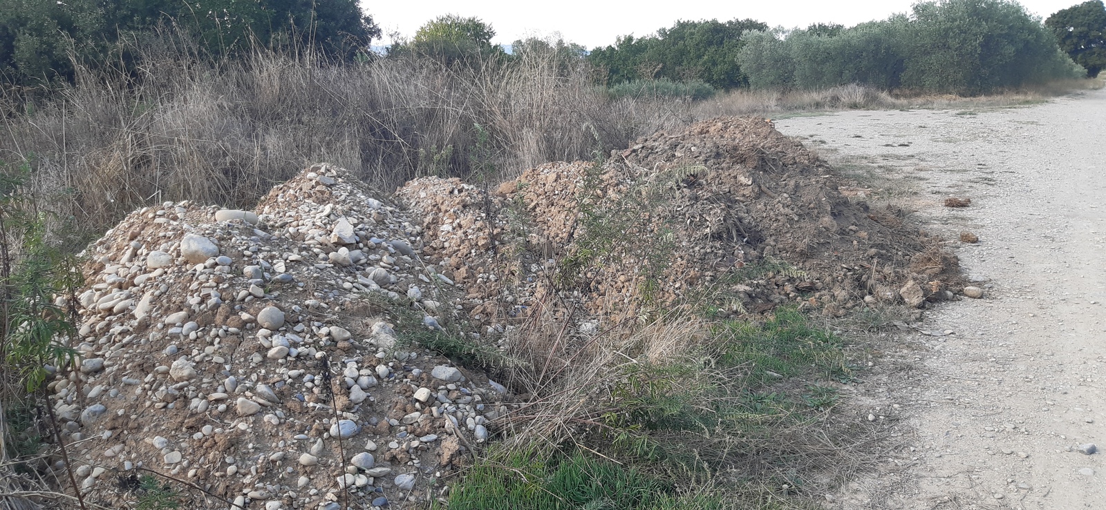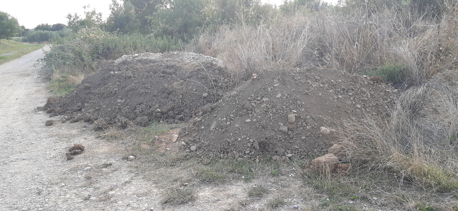 Dépôt sauvage de terre de remblai mêlé à des gravats de chantier inerte en bordure de chemin. Constaté depuis 2020 ce dépôt augmente en surface et quantité régulièrement