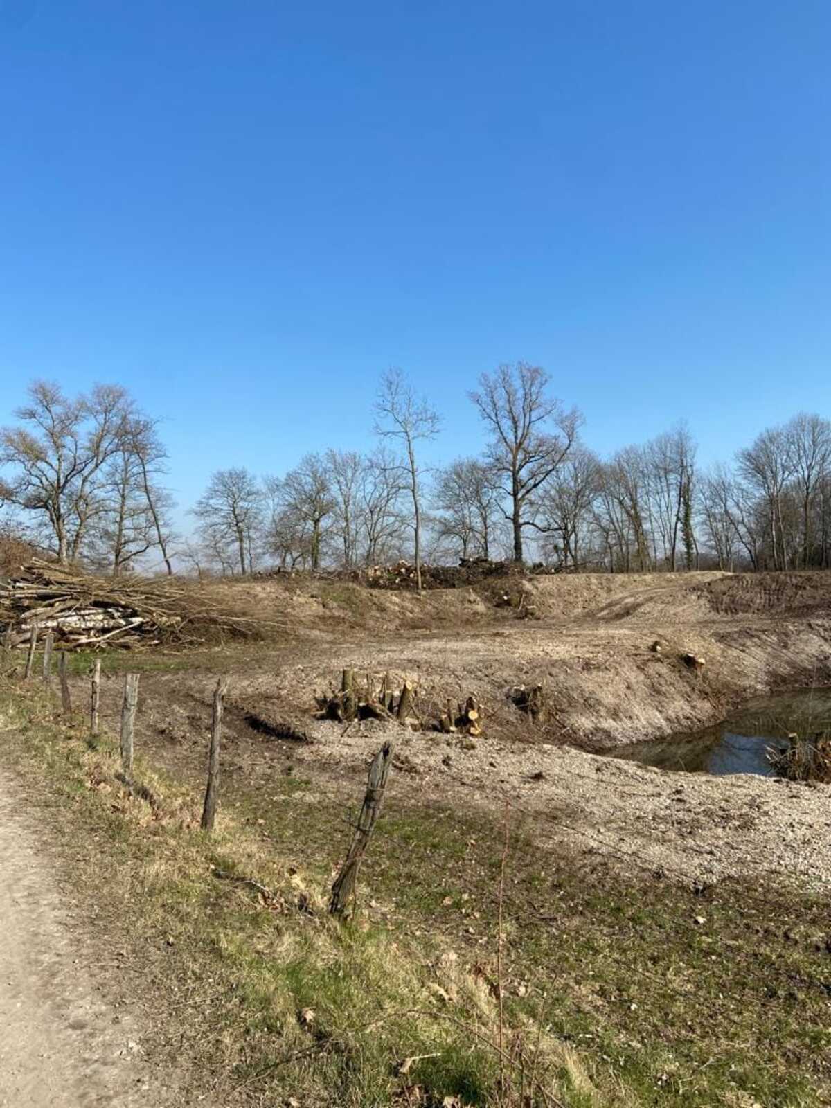 Défrichement et remblaiement des berges d'un étang, défrichement de toute la végétation ligneuse du site historique des forts Carré et d'Alsace