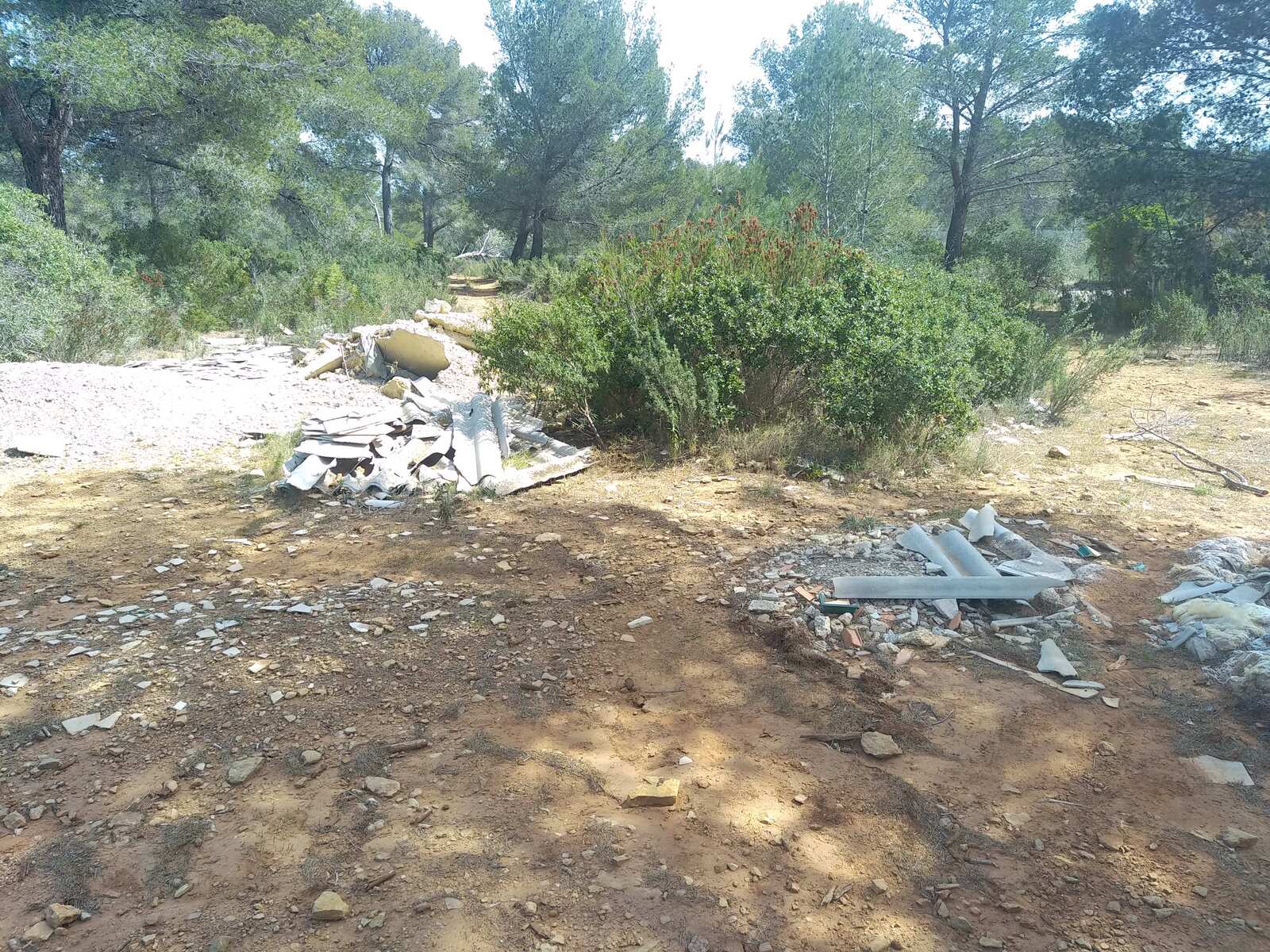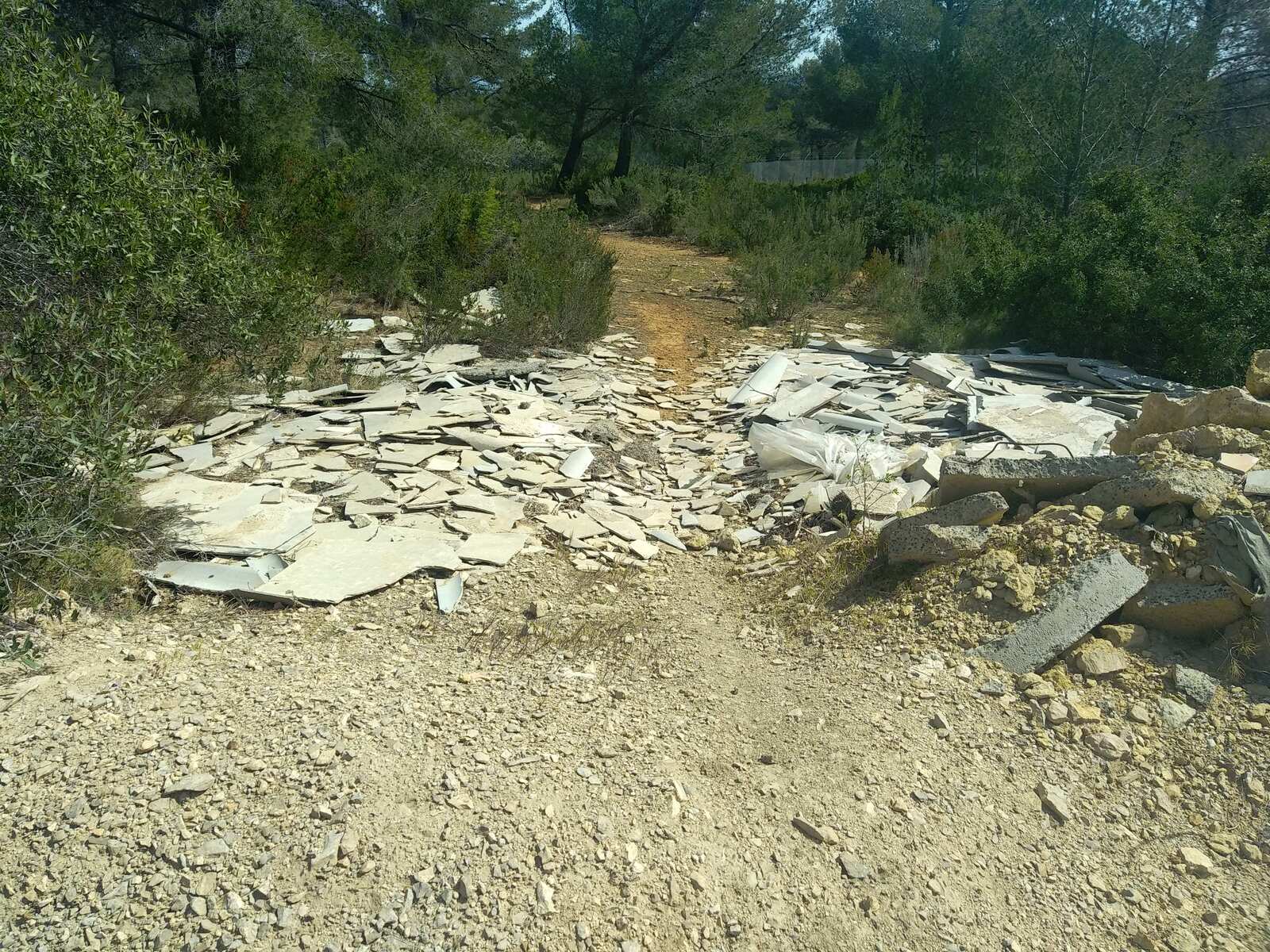 Dépôt sauvage de déchets du BTP en bordure d'un sentier de randonnée