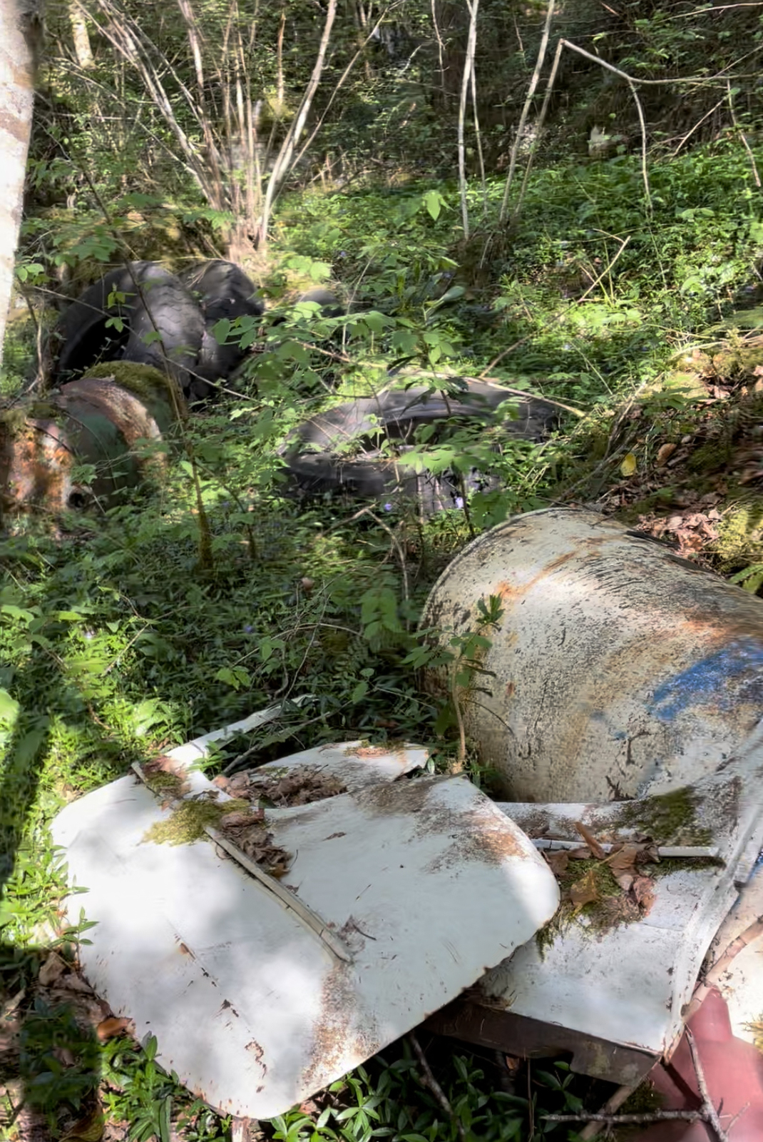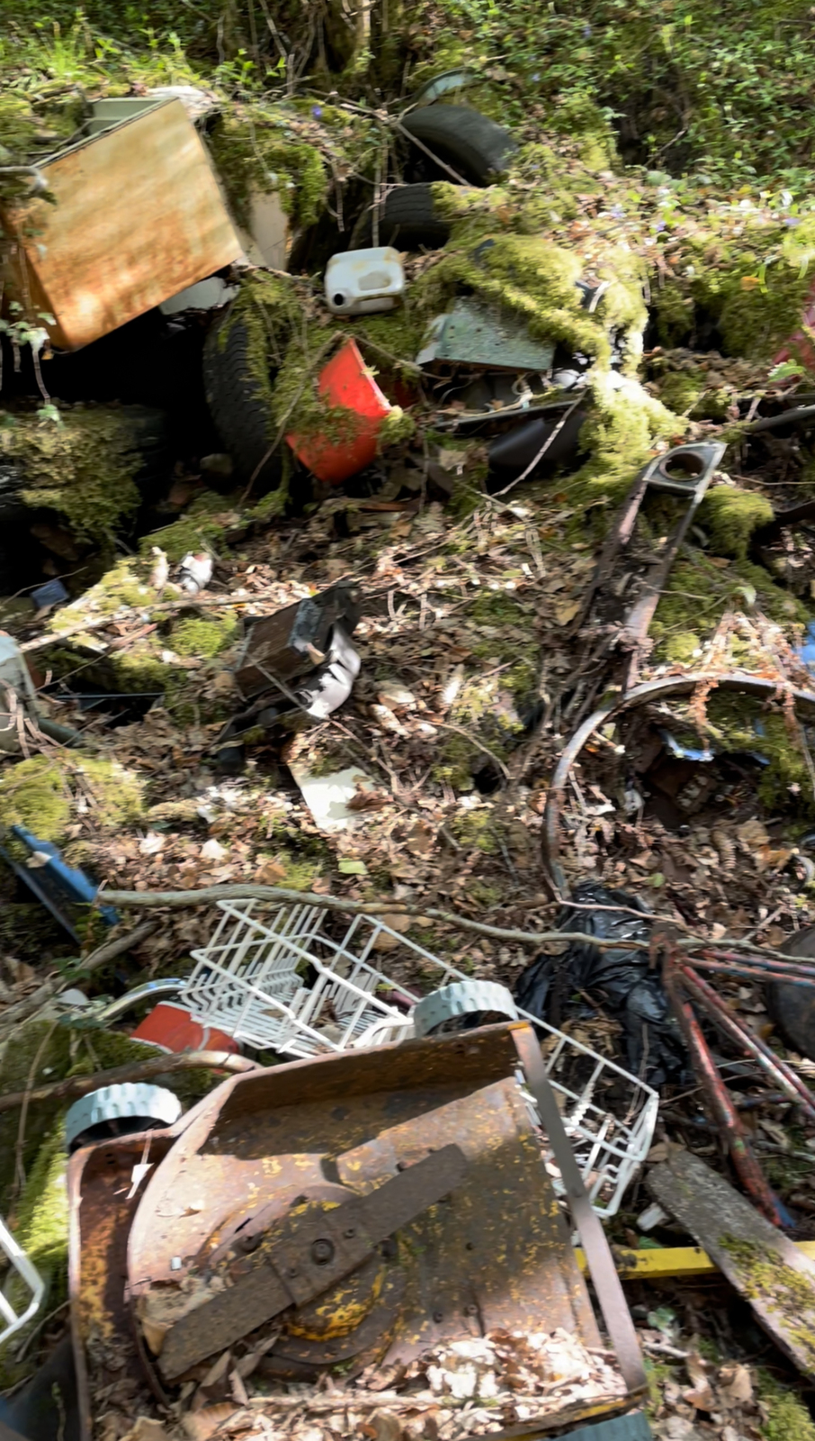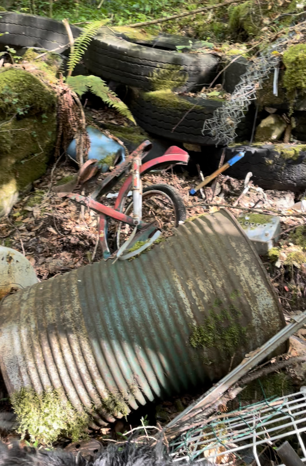 décharge sauvage et ancienne en forêt au bord du ruisseau du Tenaison