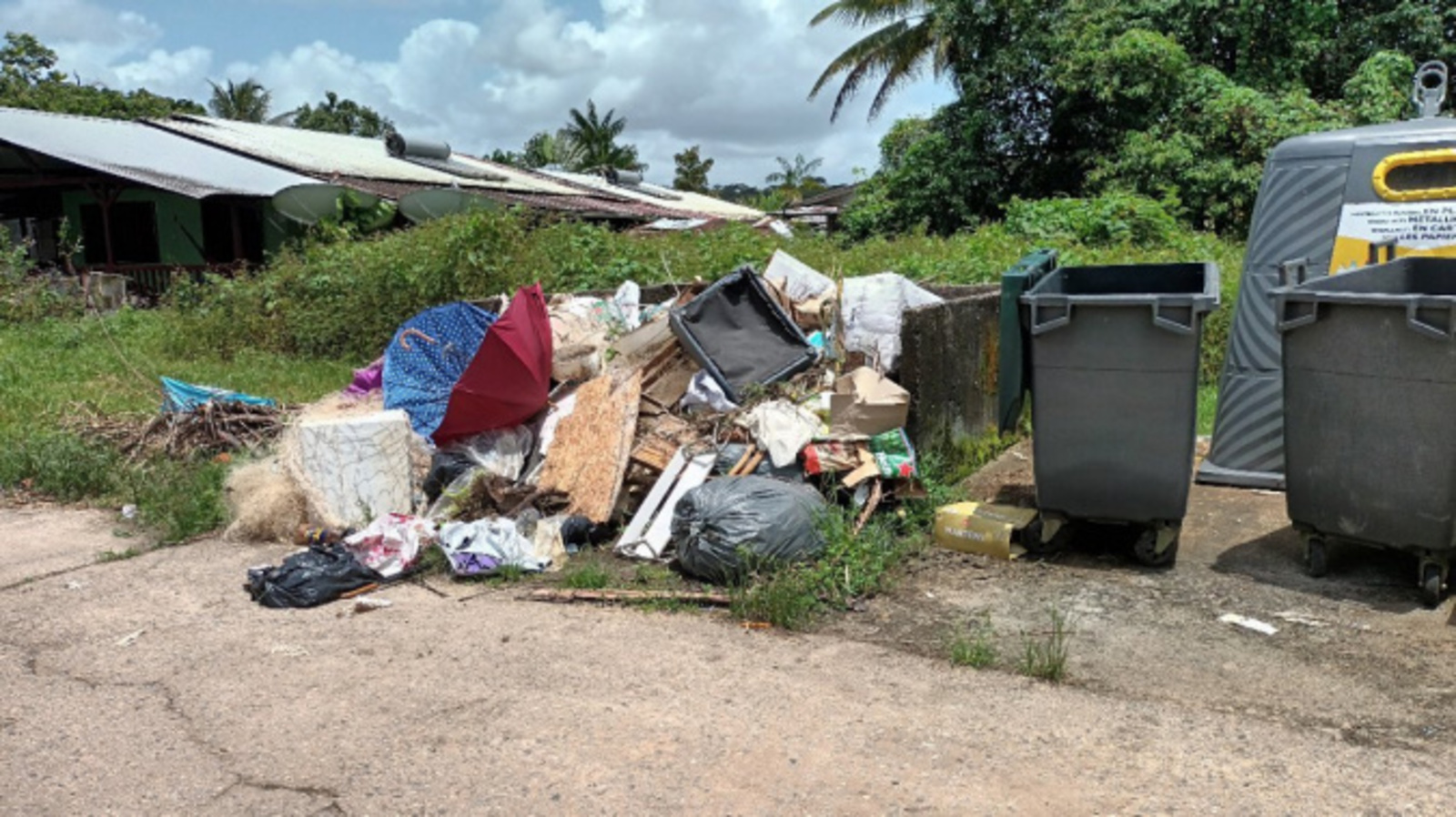Un signalement a été effectué à Régina. Des déchets ont été déposés en dehors des poubelles de ramassage et un congélateur se trouve devant les bornes de tri.