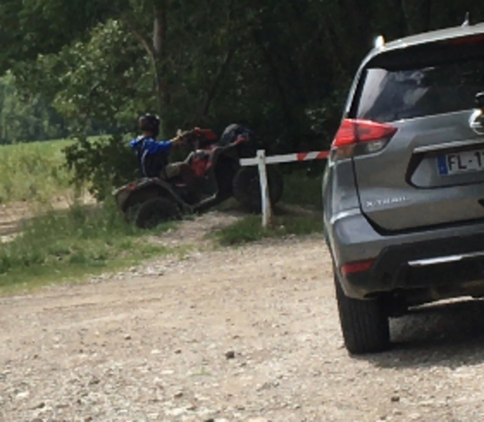 Circulation de quads sur une zone interdite, après franchissement d'une barrière
