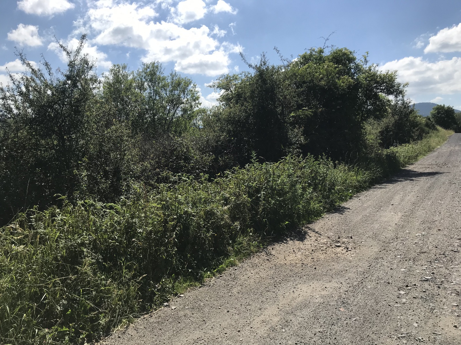 Haie assez large, avec des arbres, un peu discontinue, en bord de chemin, note de 24, à potentiel