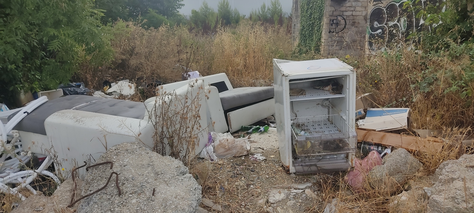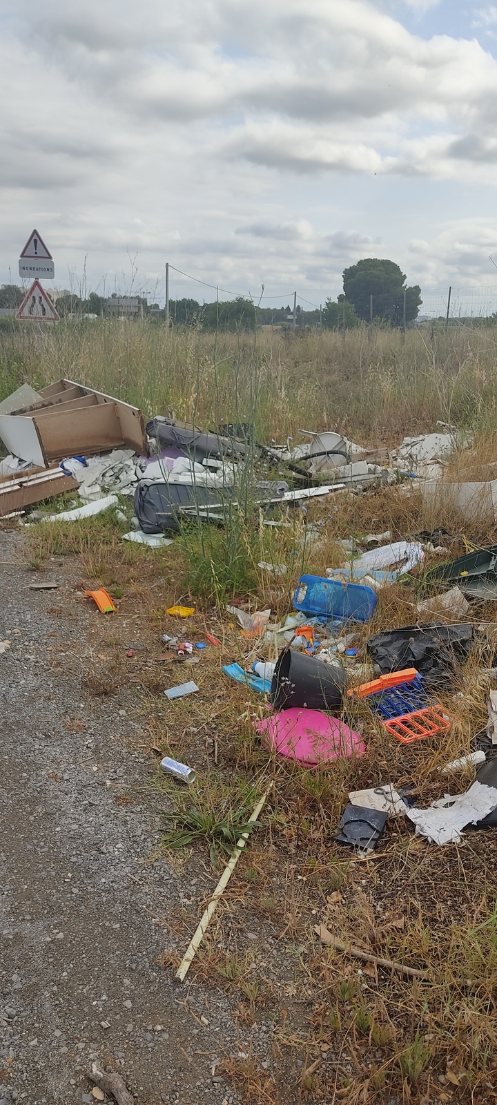 Dépôt de déchets le long du Chemin de Saporta. Au vu des signalements recensés, les dépôts sauvages de déchets sont manifestement réguliers le long de cette route.
