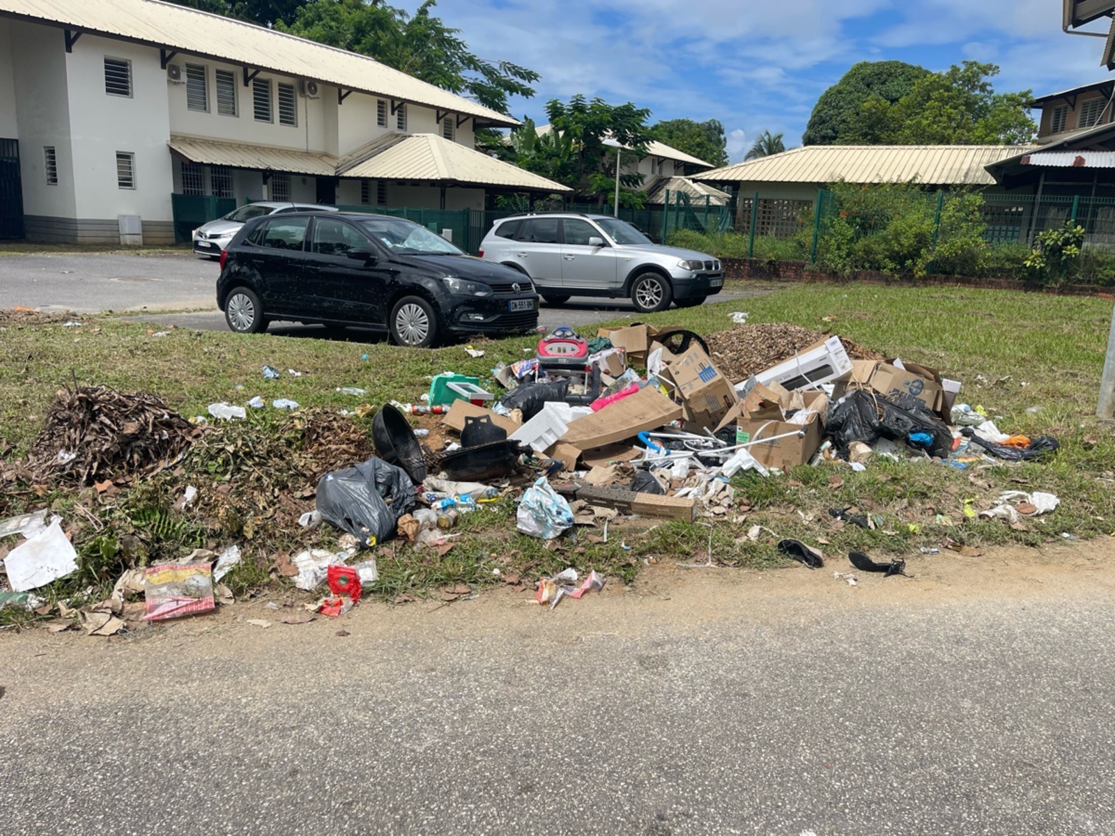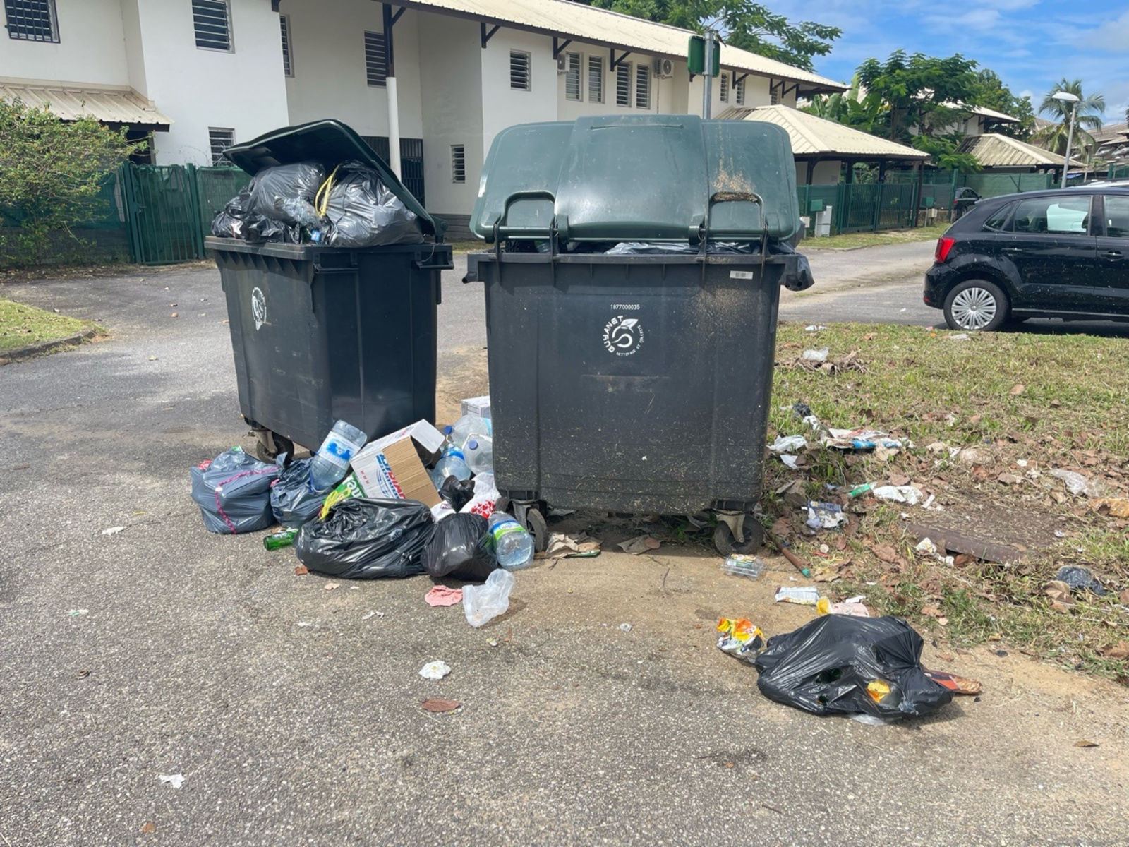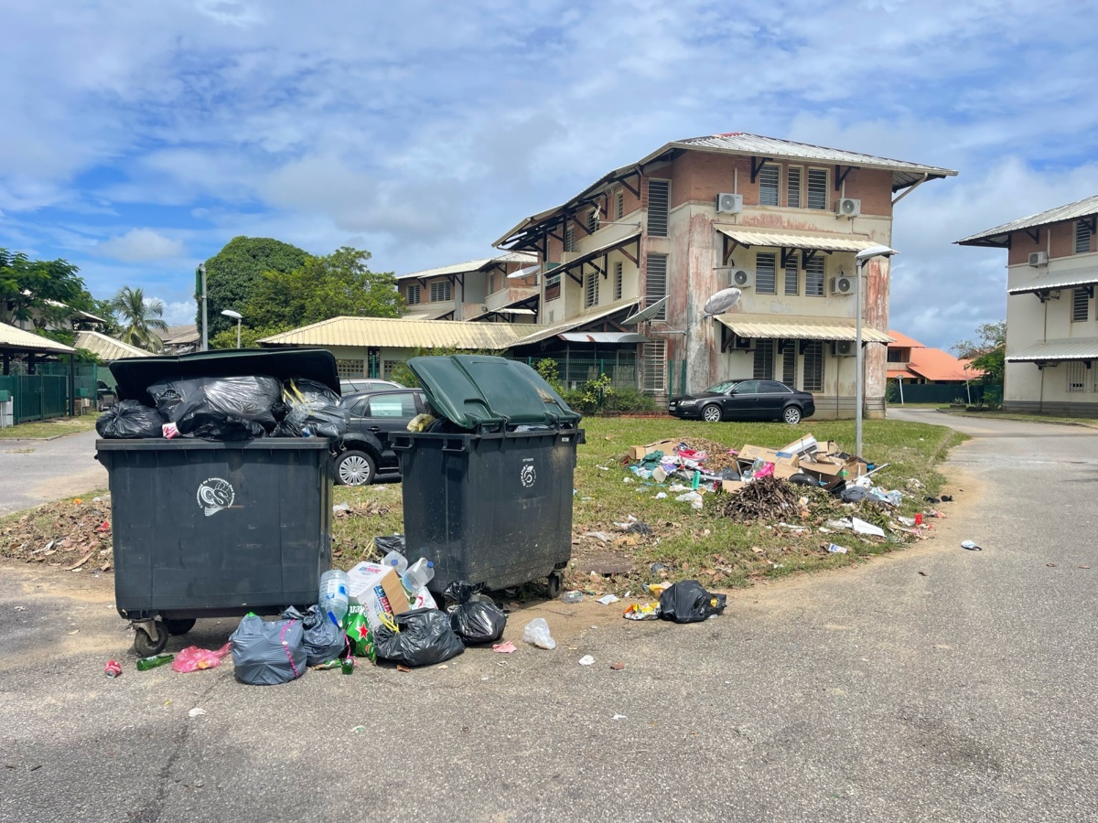 Plusieurs débordements de poubelles ont été constaté à l'avenue Jean Jaurès, à Kourou.