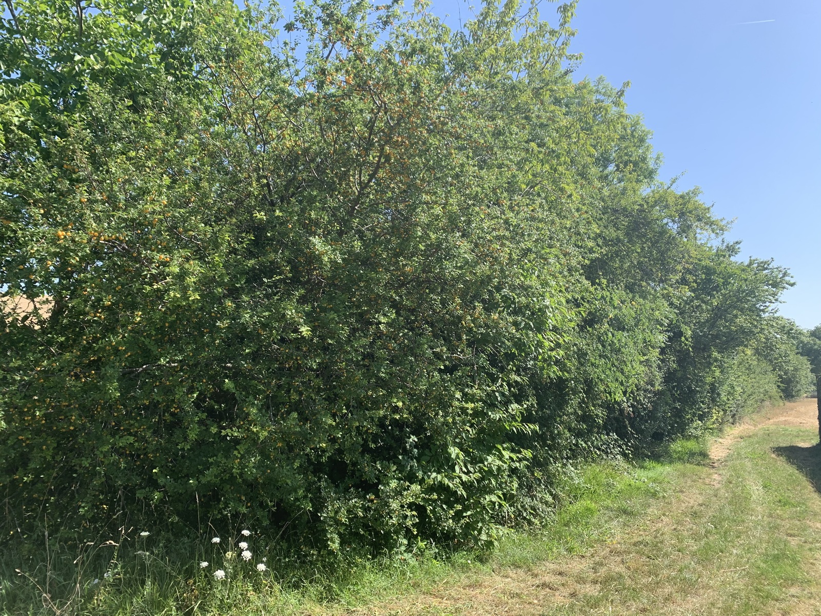 La haie large et longue de plus de 100 m est riche en biodiversité (note de 33) : oiseaux, insectes, passage animaux avec une belle bande enherbée également au niveau de la flore.