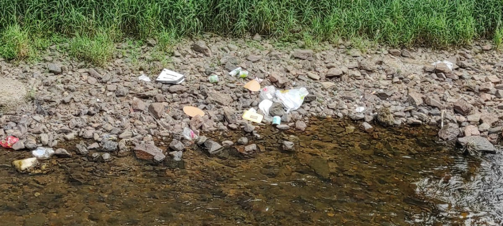 Dépôt de déchets ménagers le long de l'eau , ce sera emporté à la prochaine crue...