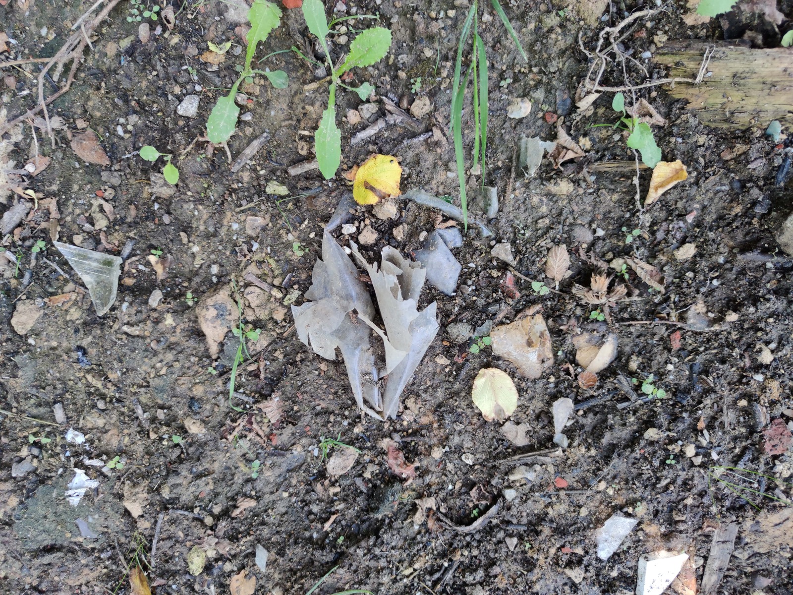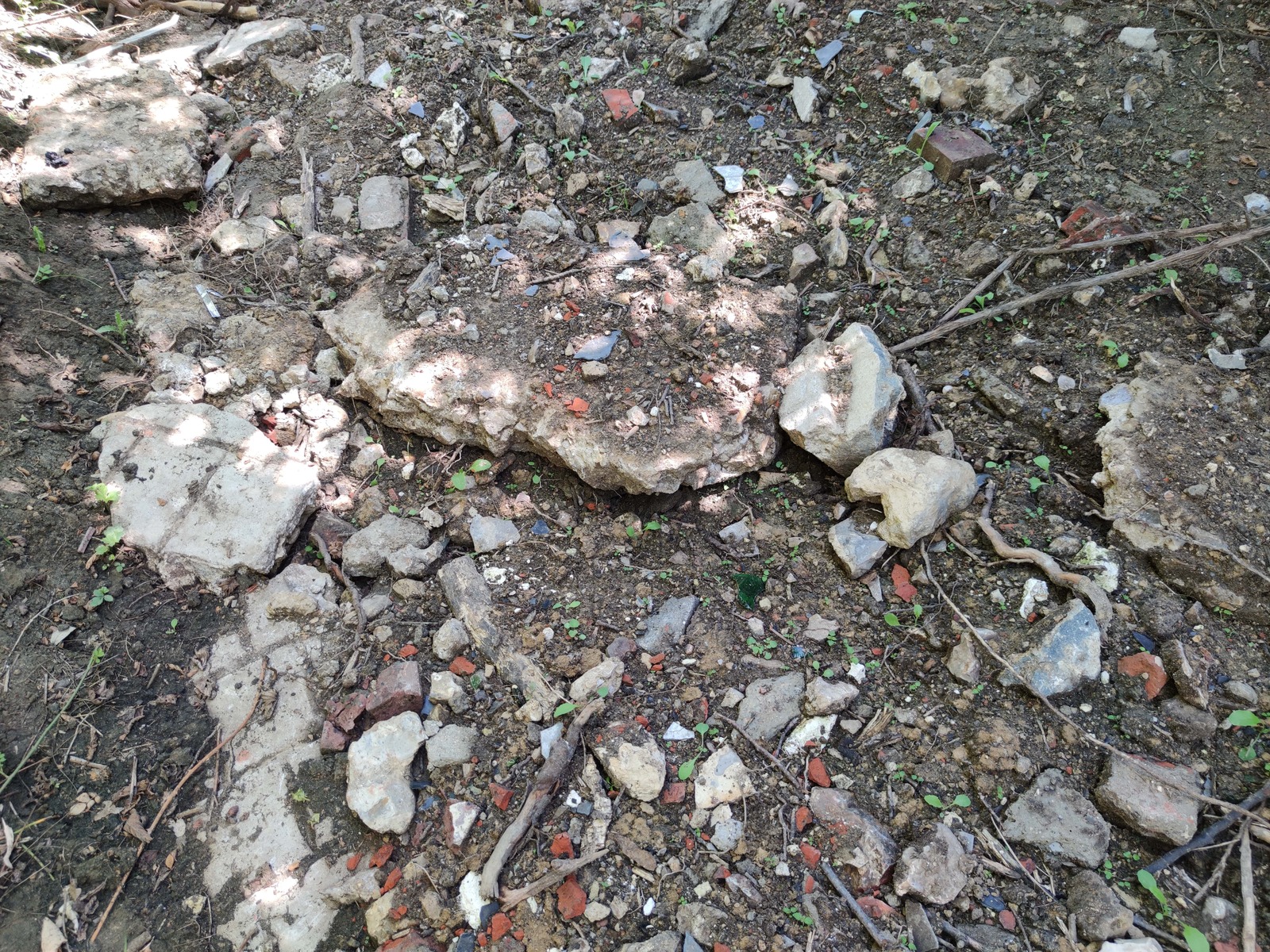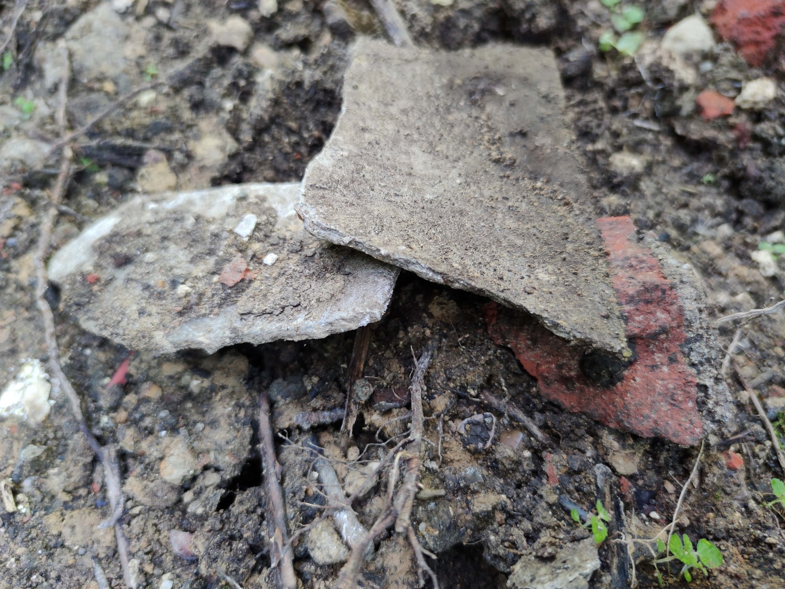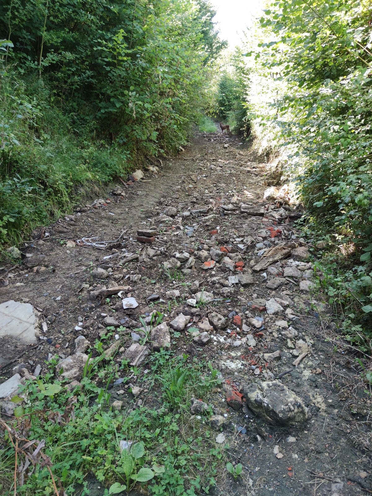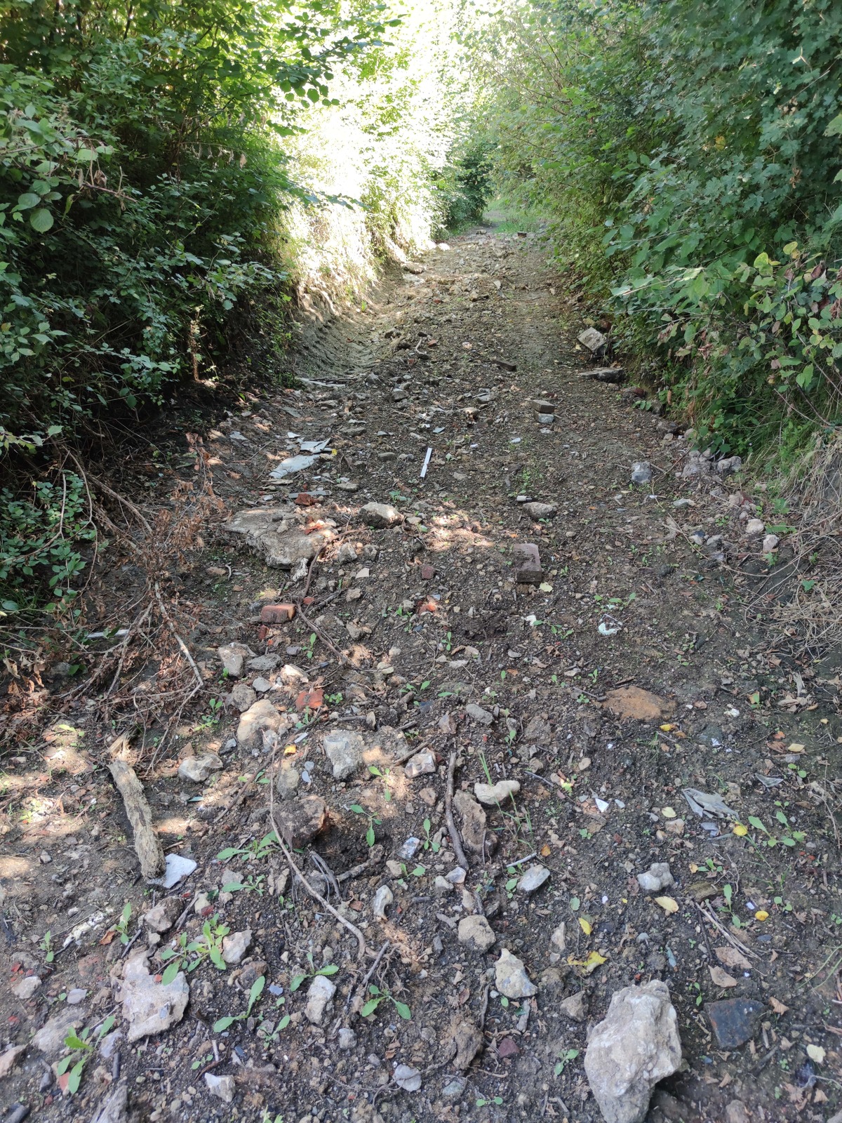 Remblai d'un chemin avec des gravats et déchets hétéroclites
