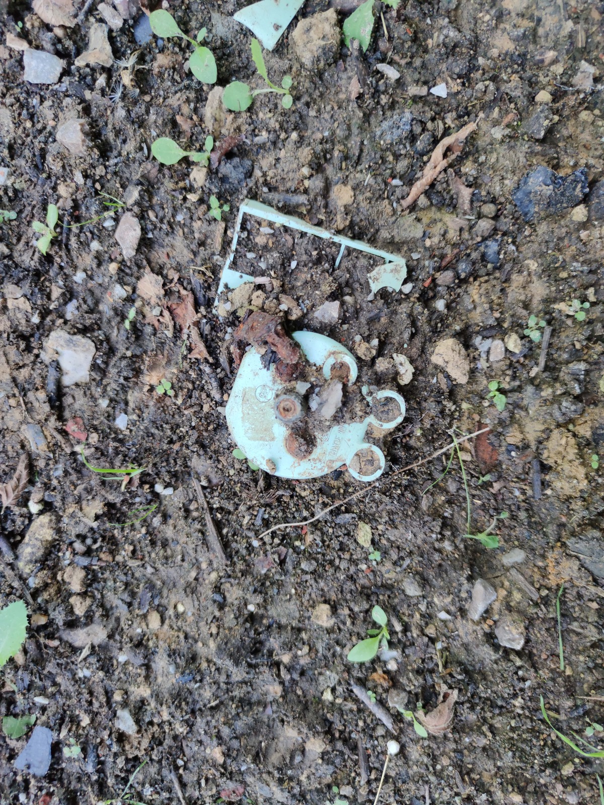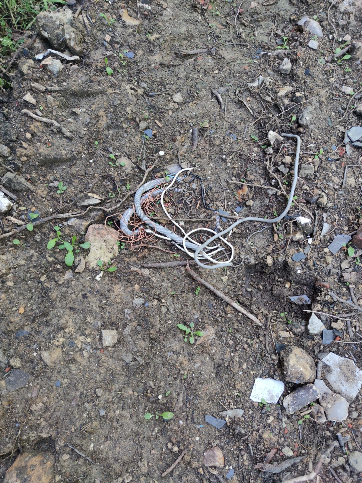 Remblai d'un chemin avec des gravats et déchets hétéroclites (câbles électriques, amiante, plastique, bois, fer, béton, briques, etc.)