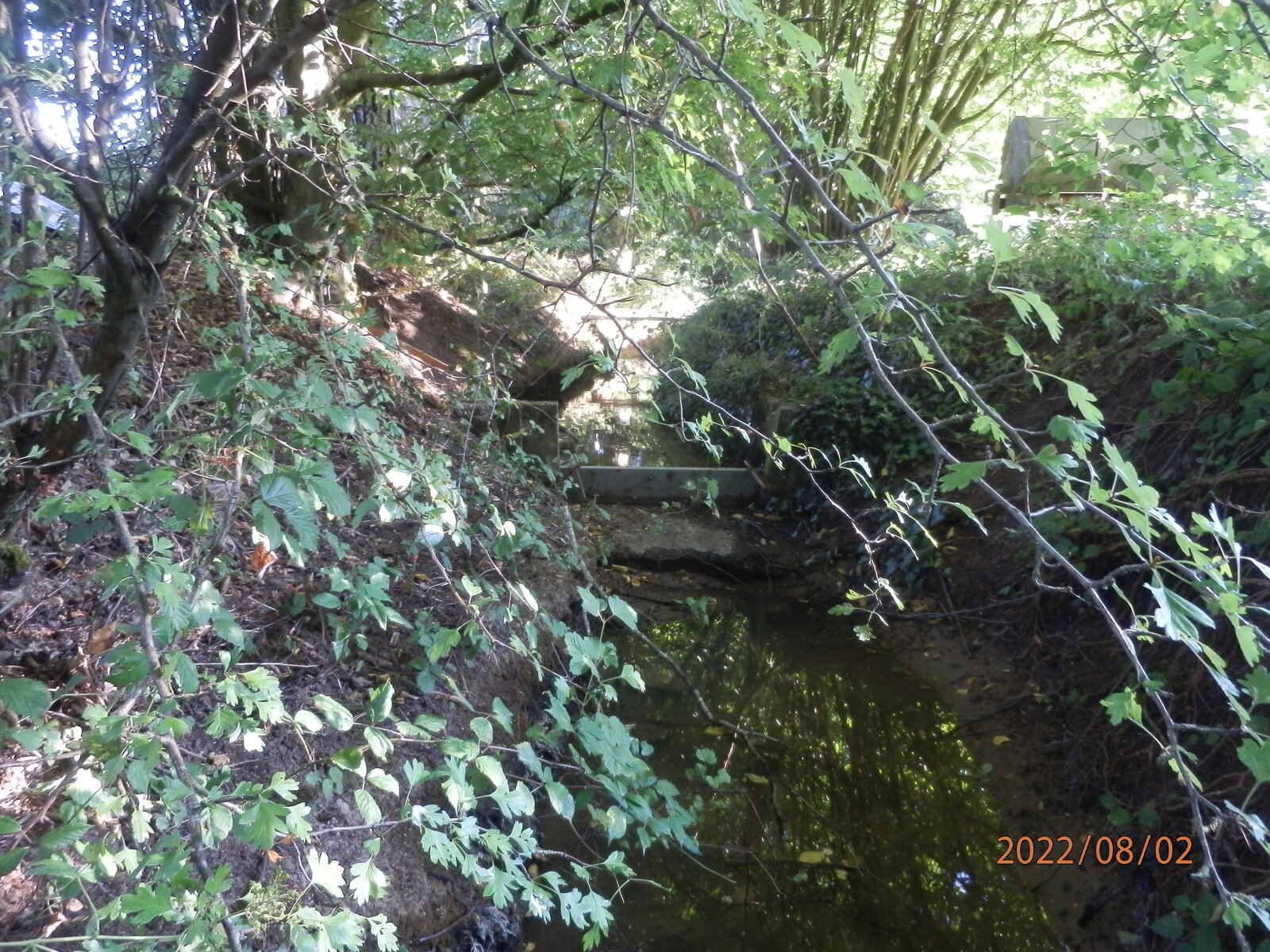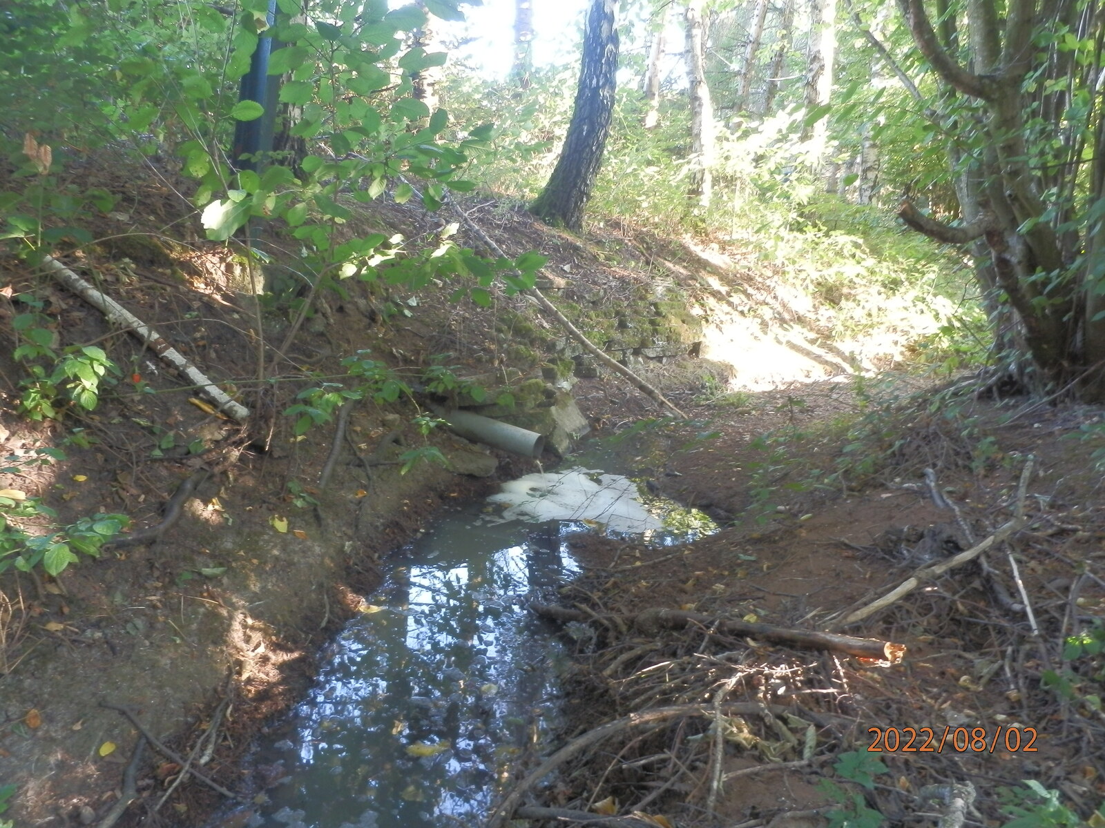 Assèchement du Muhlgraben, près de sa source causé par un tuyau de pompage provenant d'une maison voisine.
