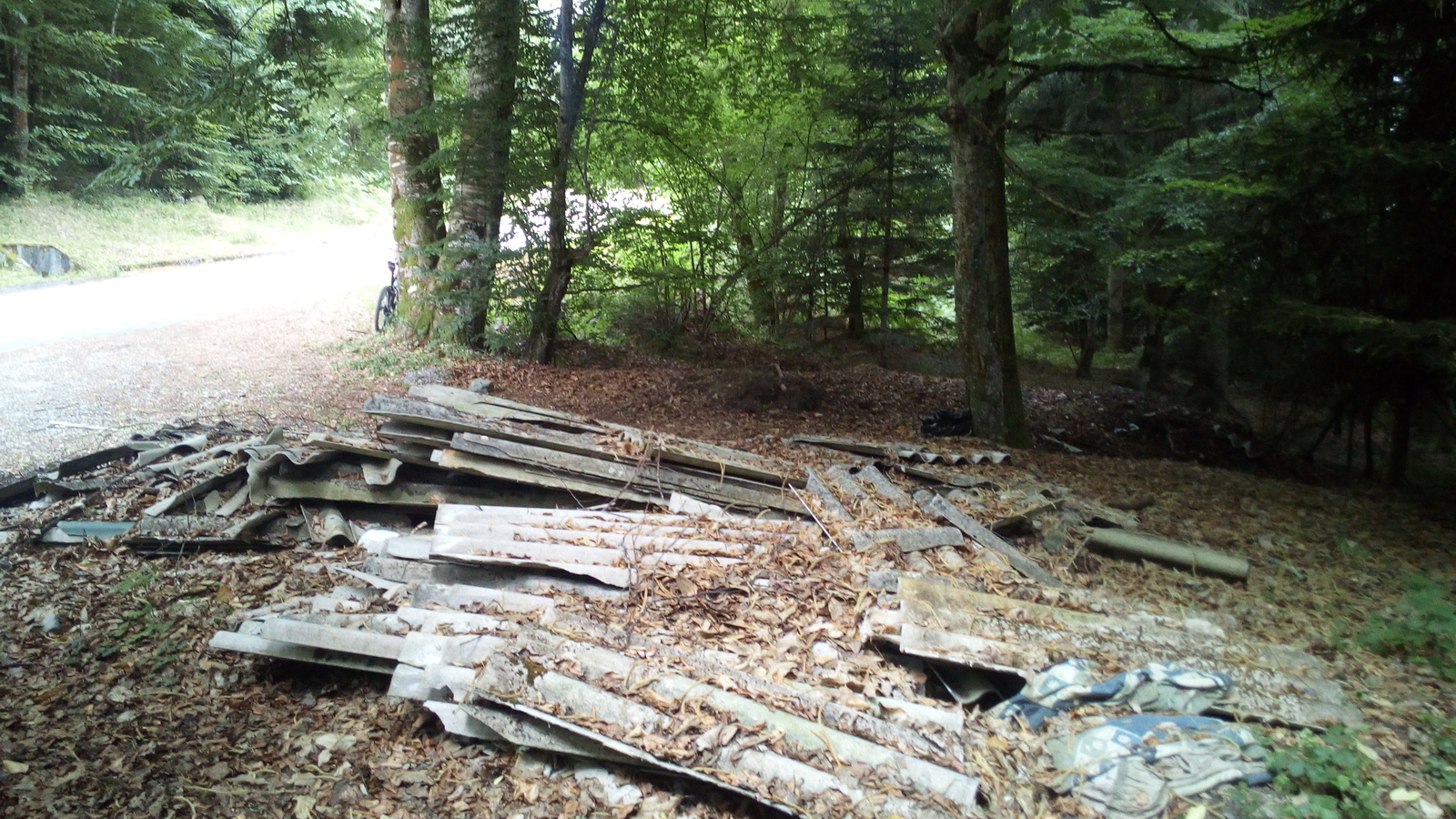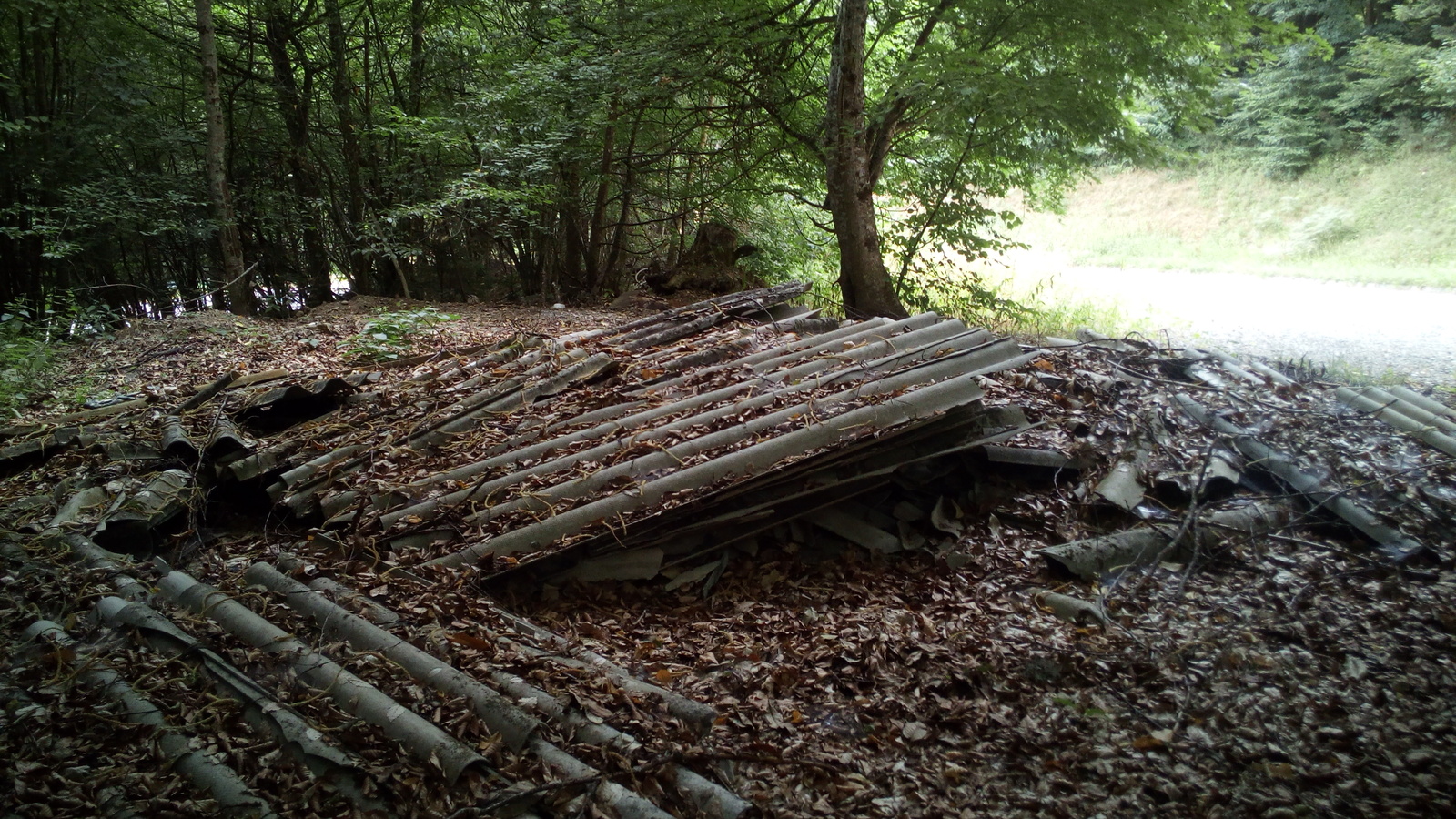 - Volume : plusieurs m² de tôles ondulées ( genre fibrociment, peut-être avec amiante)
