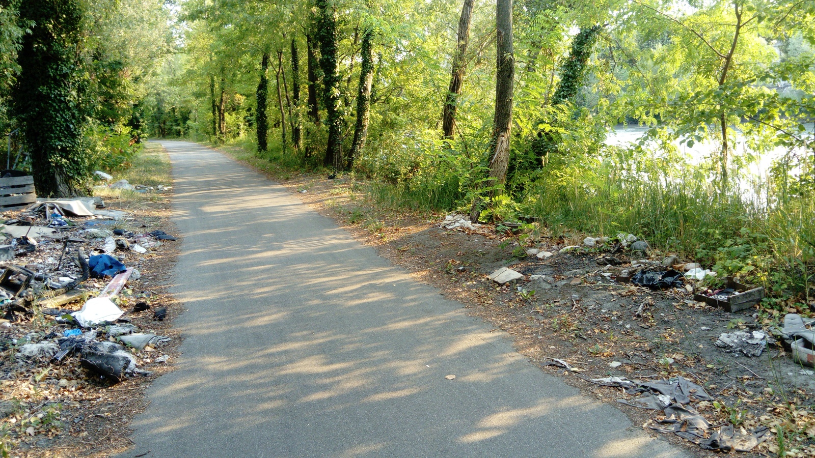 Le long de la voie verte des tas de déchets qui sont des restes de campements abandonnés.