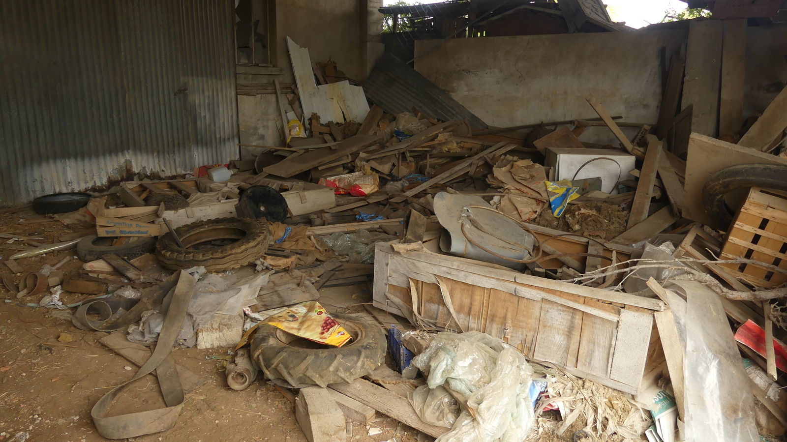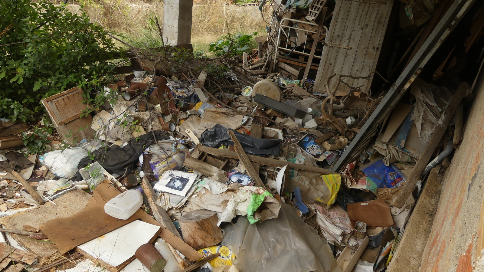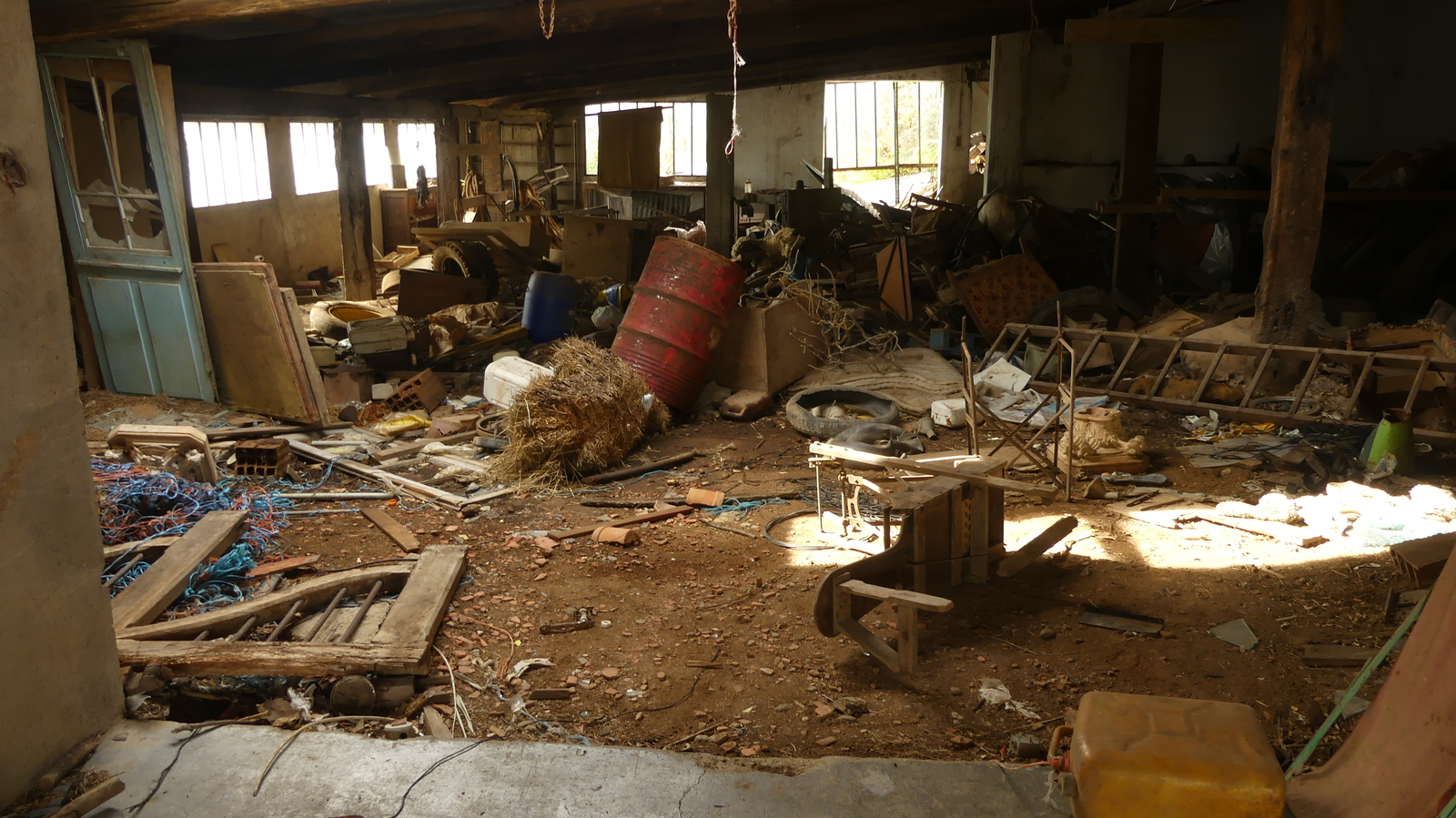 Domaine agricole abandonné avec de grandes quantités de déchets
