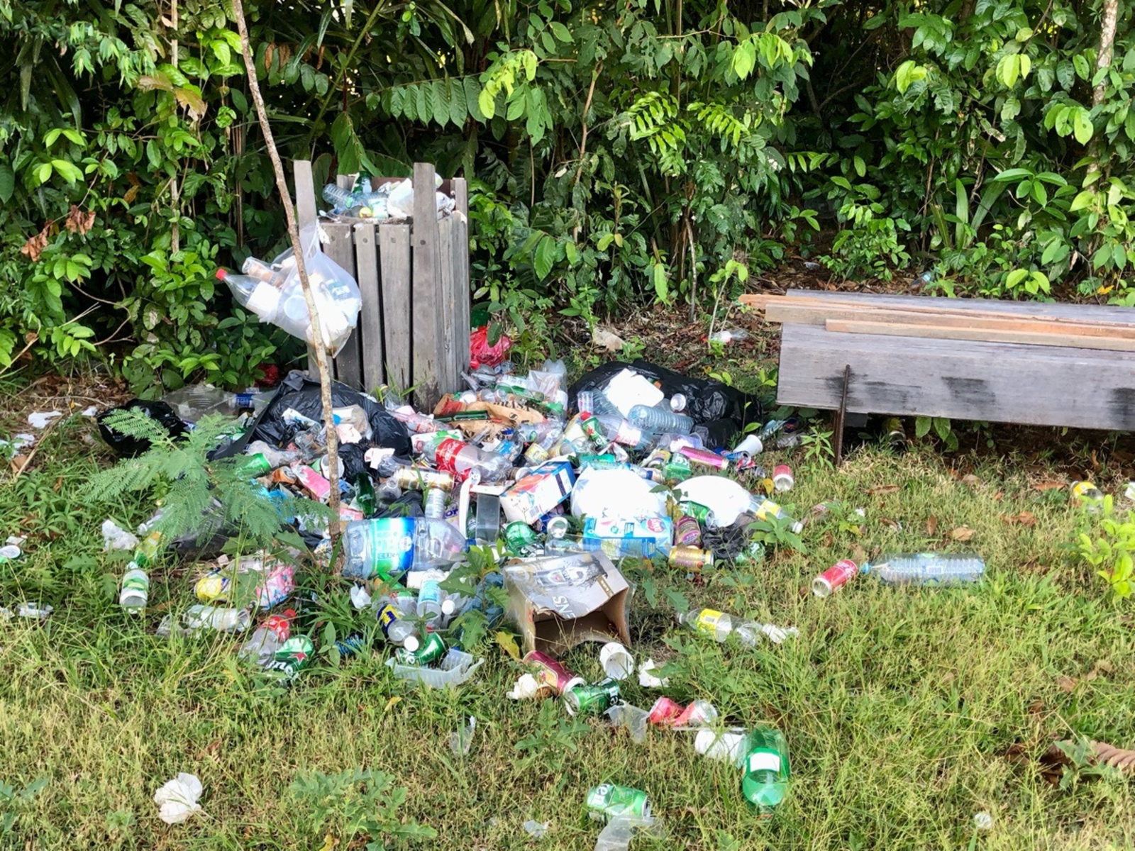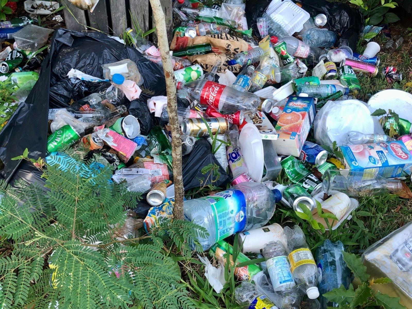 Type de déchets : bouteilles plastiques et canettes essentiellement, emballages de produits alimentaires.