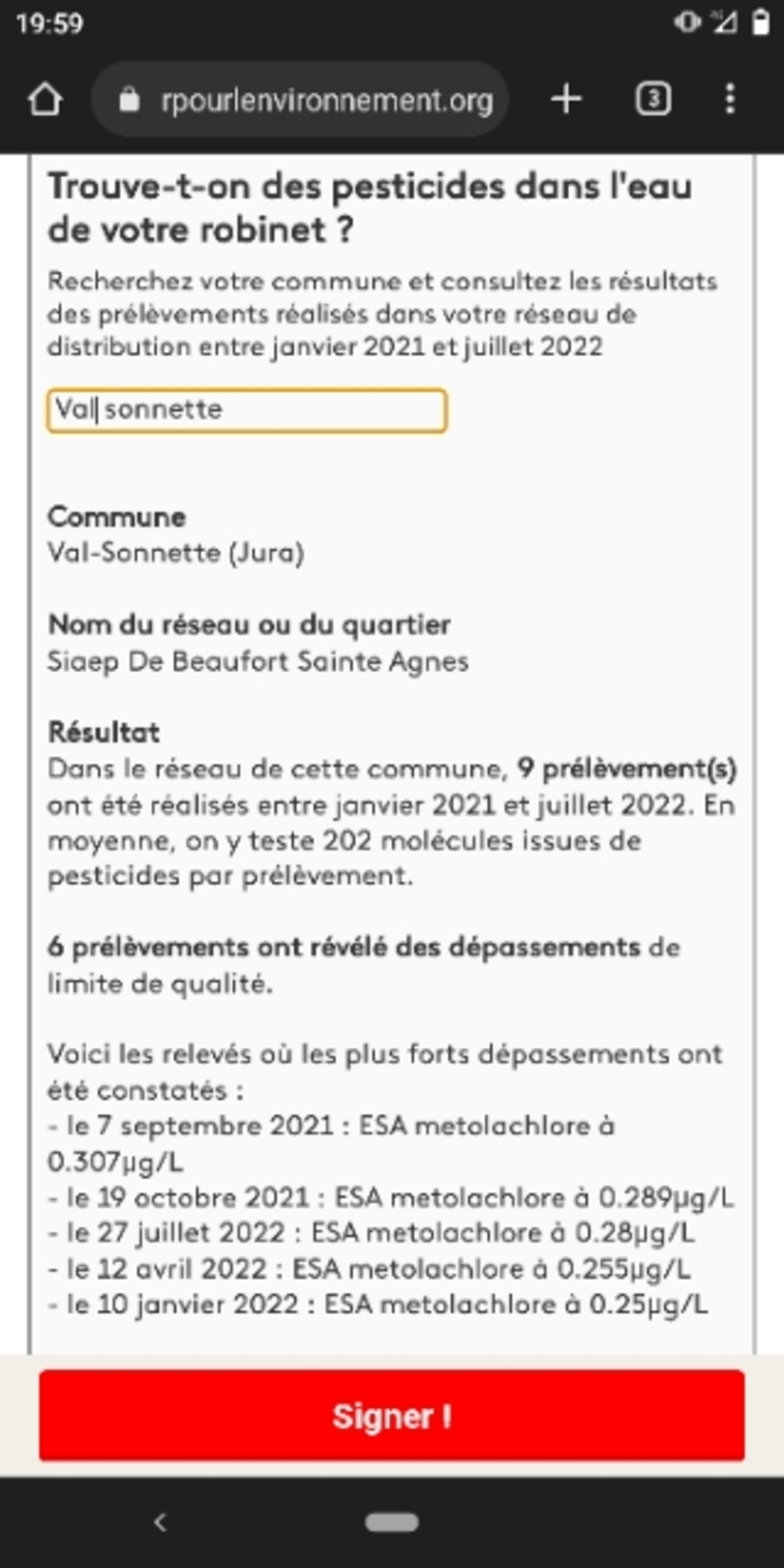 Le SMEA (syndicat eau de Beaufort), distribue une eau fortement chargé en pesticide