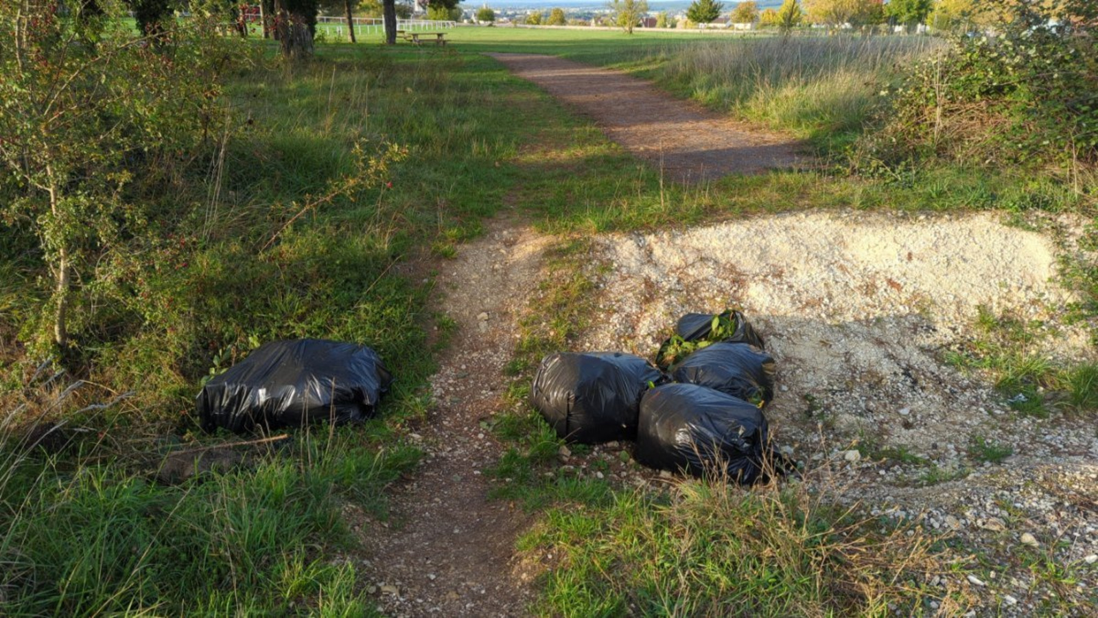 Dépôt sauvage de déchets constitué de sacs poubelles.