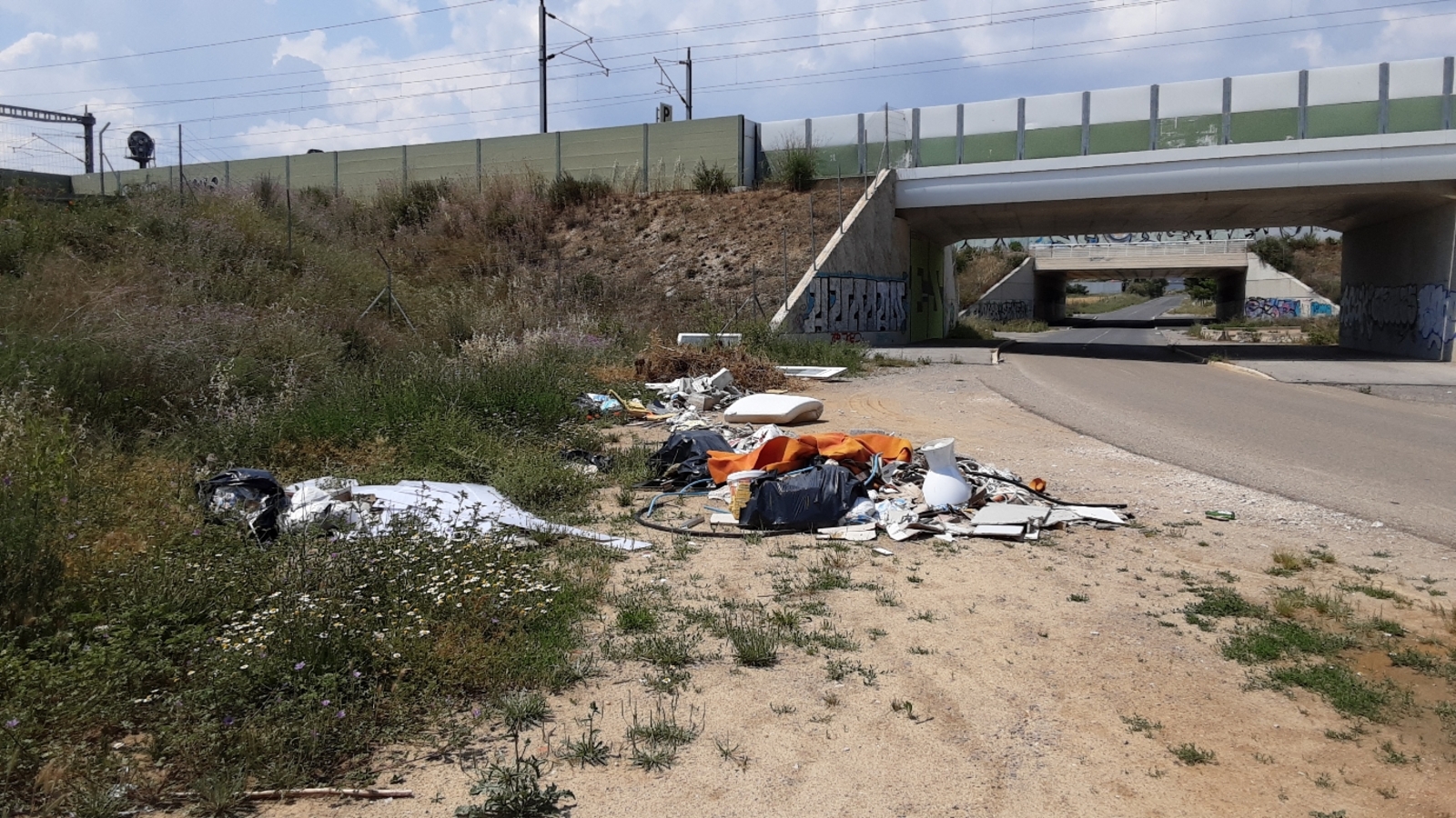 Dépôt de déchets le long du Chemin de Saporta. Au vu des signalements recensés, il semblerait que les dépôts sauvages de déchets soient réguliers le long de ce chemin.
