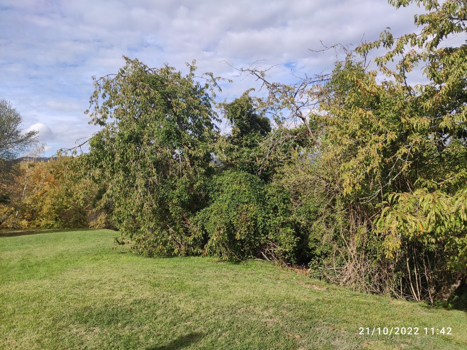 A l'entrée d'un lotissement, Il s'agit d'une haie très jolie entre d'un coté une grande pelouse arborée entretenue où les habitants peuvent se promener et de l'autre une sorte de "déchetterie BTP et déchets verts".