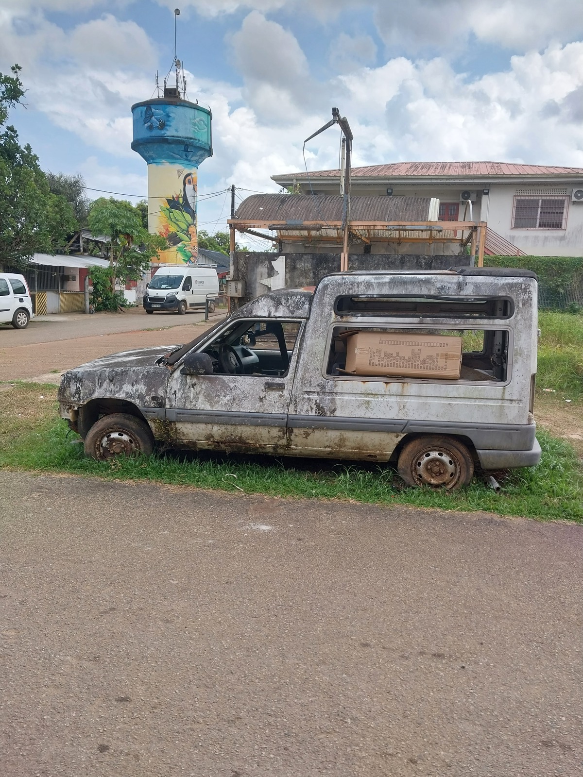 Un véhicule hors d'usage a été signalé à Saint Georges, au croisement entre les rues Alphonse Gueye et rue Noël Mazy. La voiture est en pleine zone urbanisée, et en mauvais état.