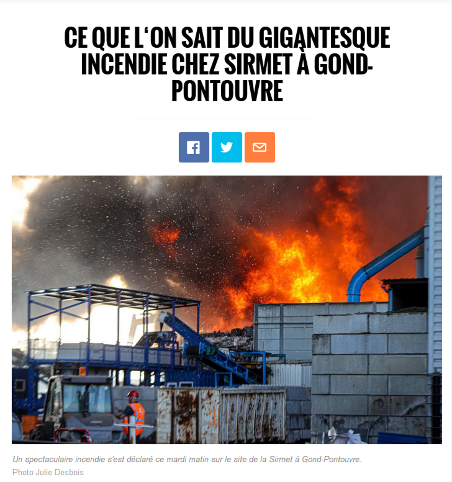 Le mardi 1er novembre, un incendie c'est déclaré sur le site de la SIRMET, au Gond-Pontouvre.