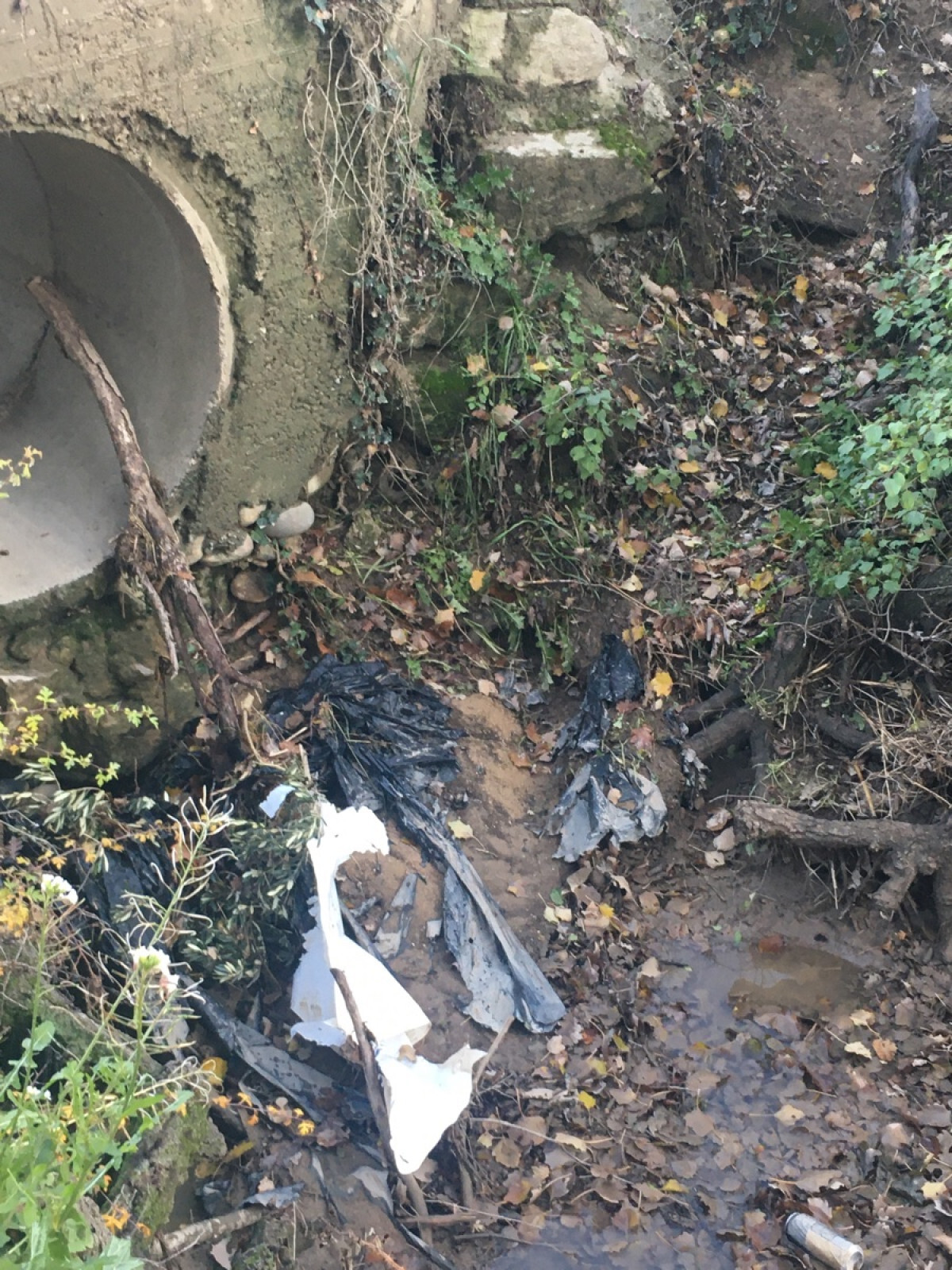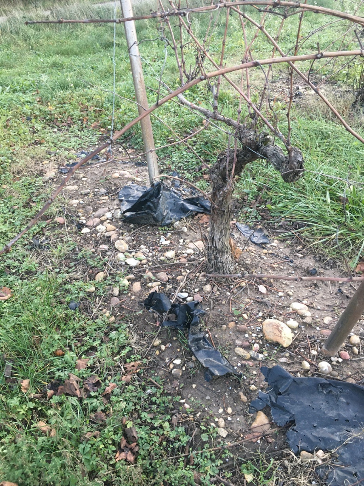 Déchets plastiques agricoles issus des vignes, à Morières-les-Avignon, qui s'envolent sur les parcelles voisines et dans les cours d'eau.
