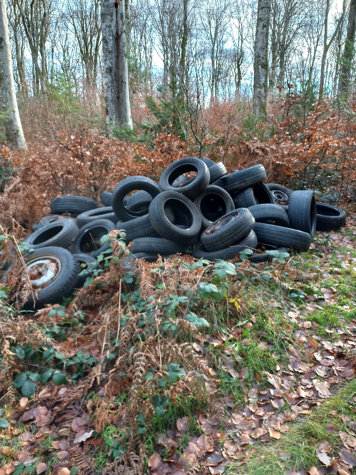 Dépôts d'une quarantaine de pneus (déchets sauvages) en Forêt des Colettes (pneus