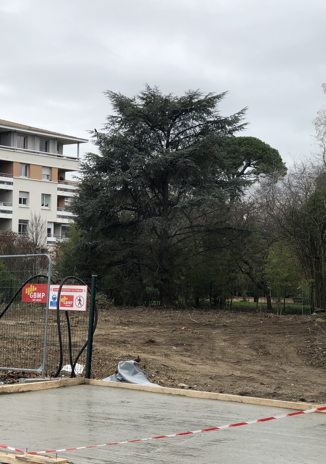 Coupe future d'un cèdre de chypré présent depuis 1955.