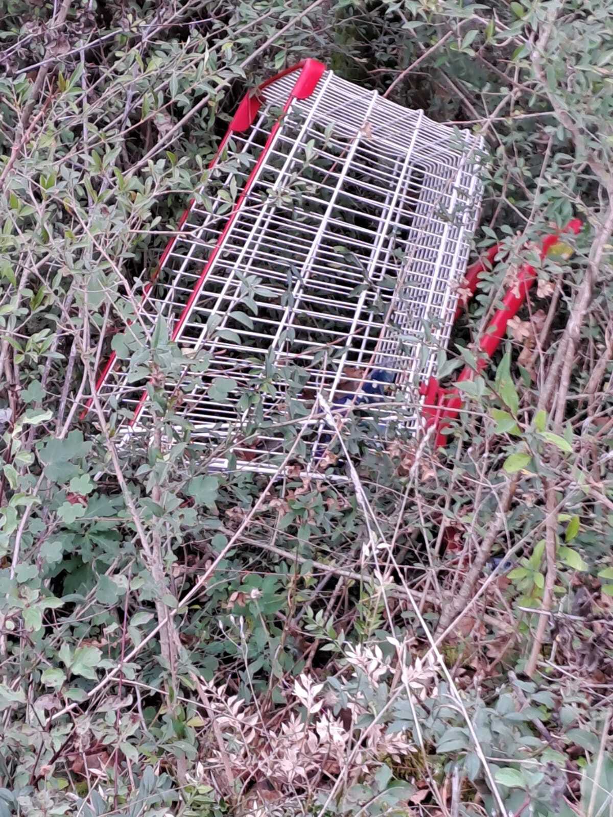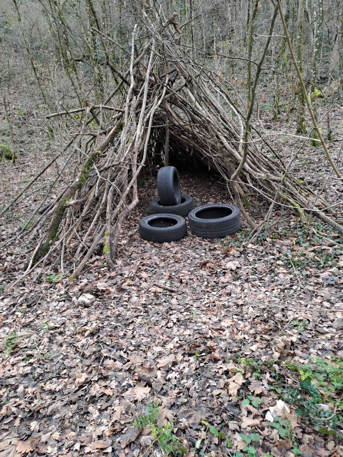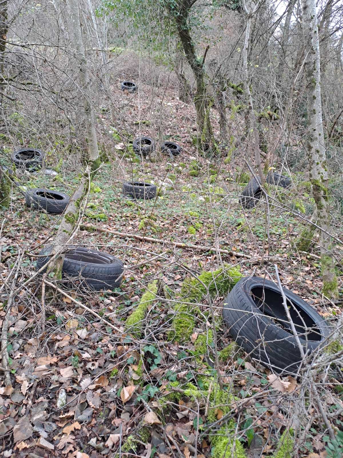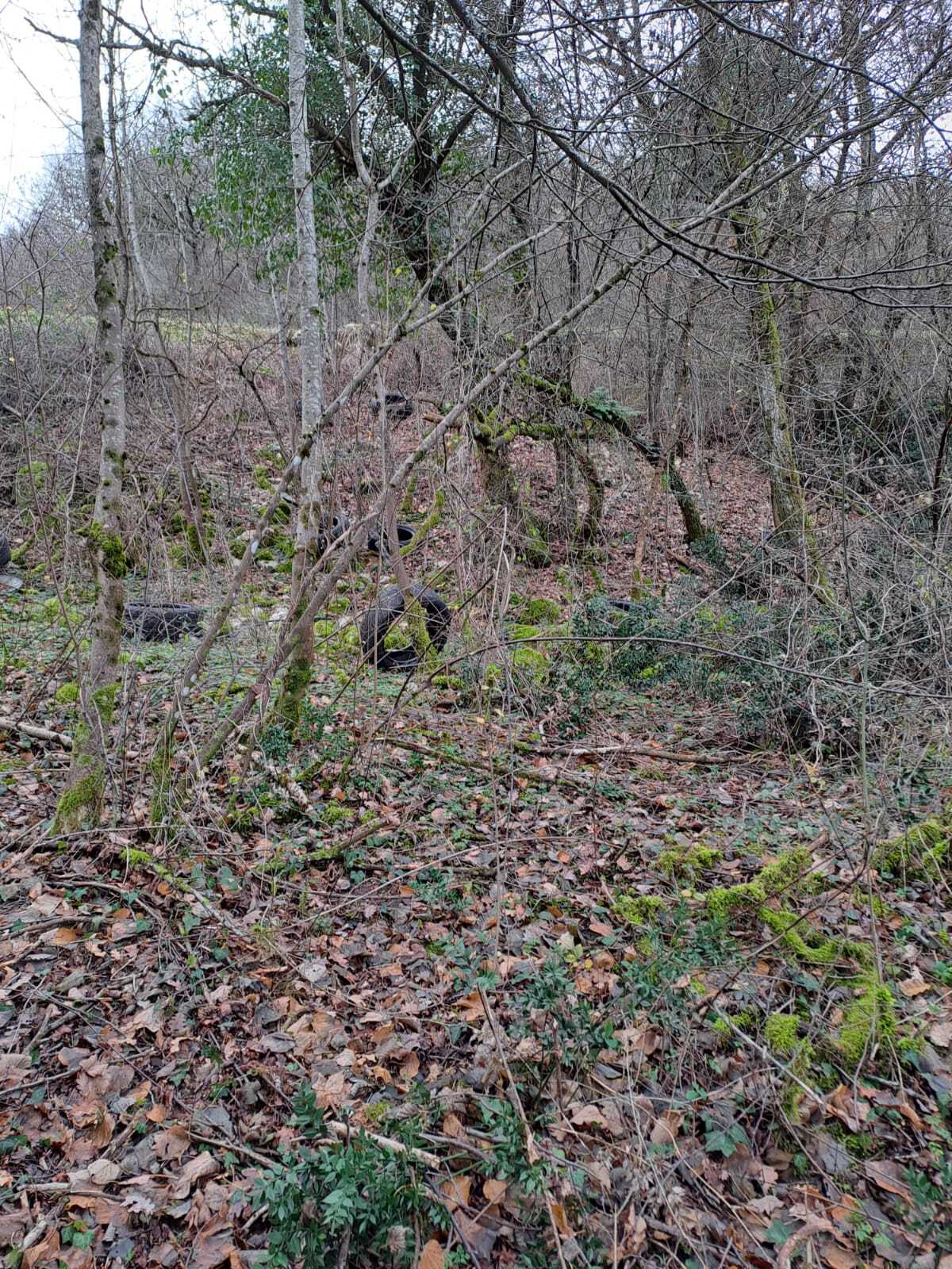 Présence de pneus et divers déchets en dessous du chemin du génie.
