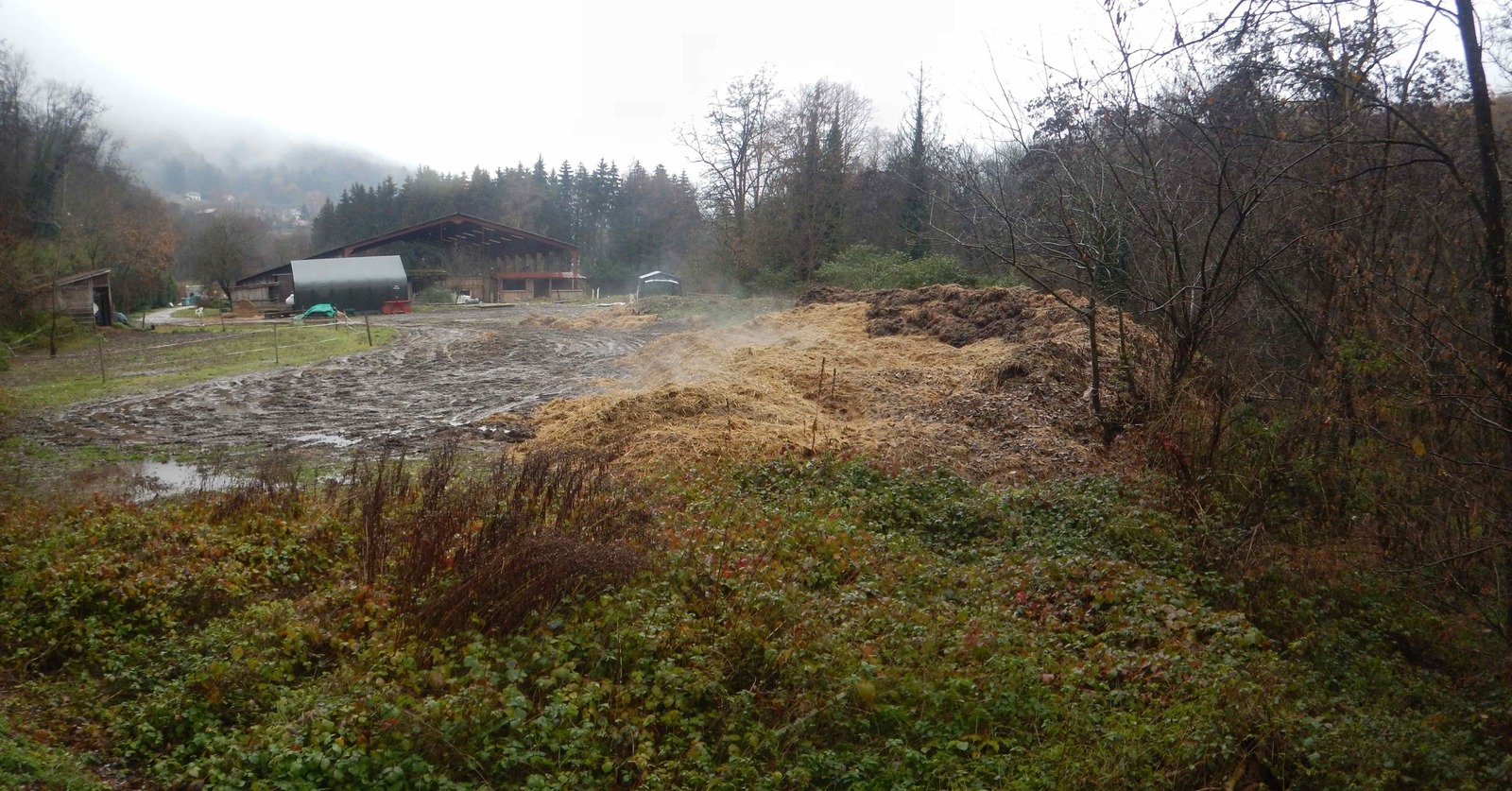 Remblaiement d'un talus depuis des années avec du fumier de cheval.