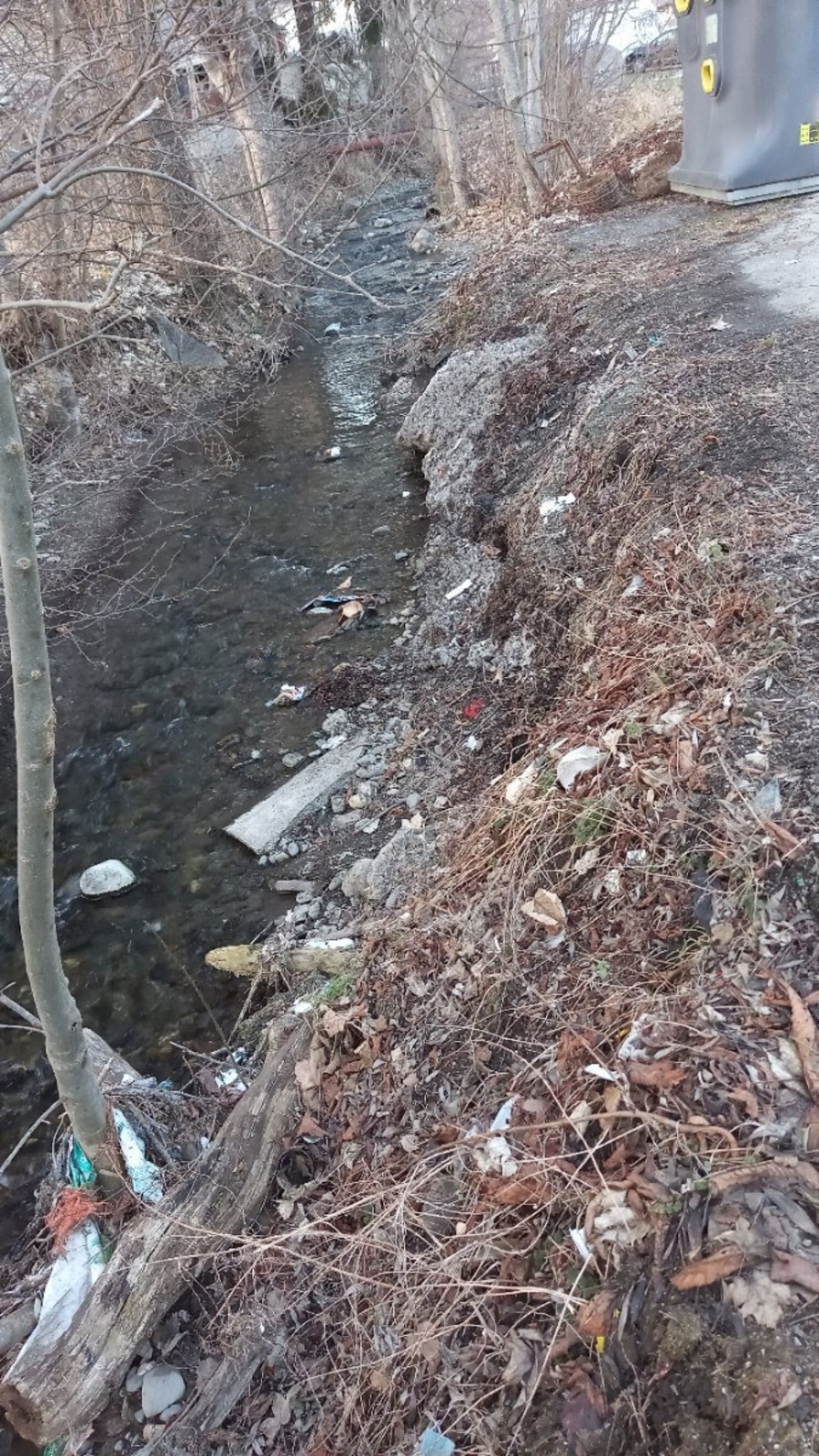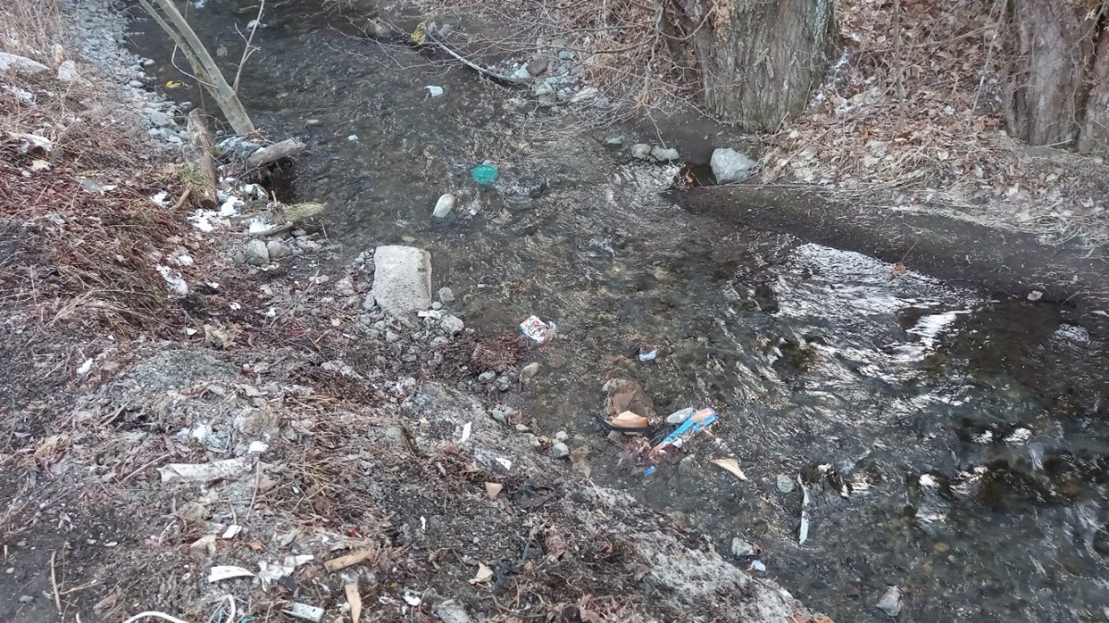 Pollution du ruisseau par envolement de la decharge de Pierre Chatel