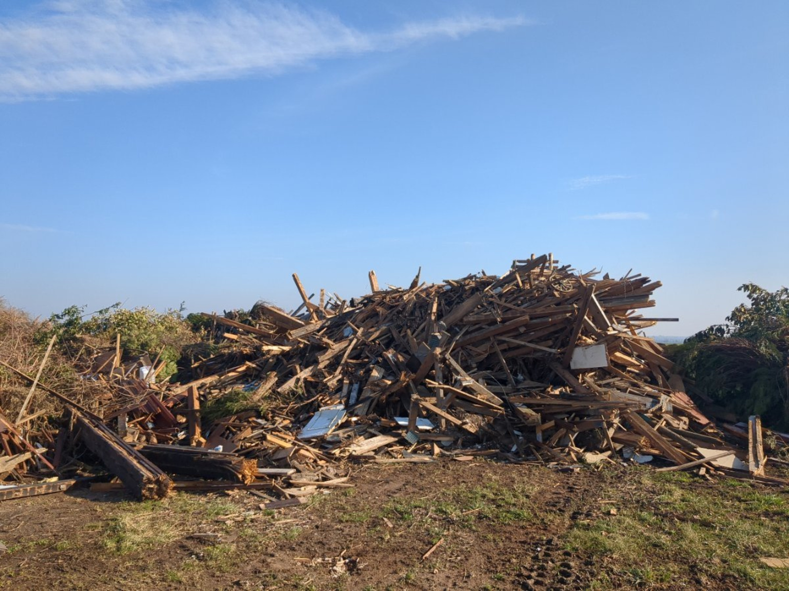 Dépôts de déchets issus de chantier de démolition et brulage