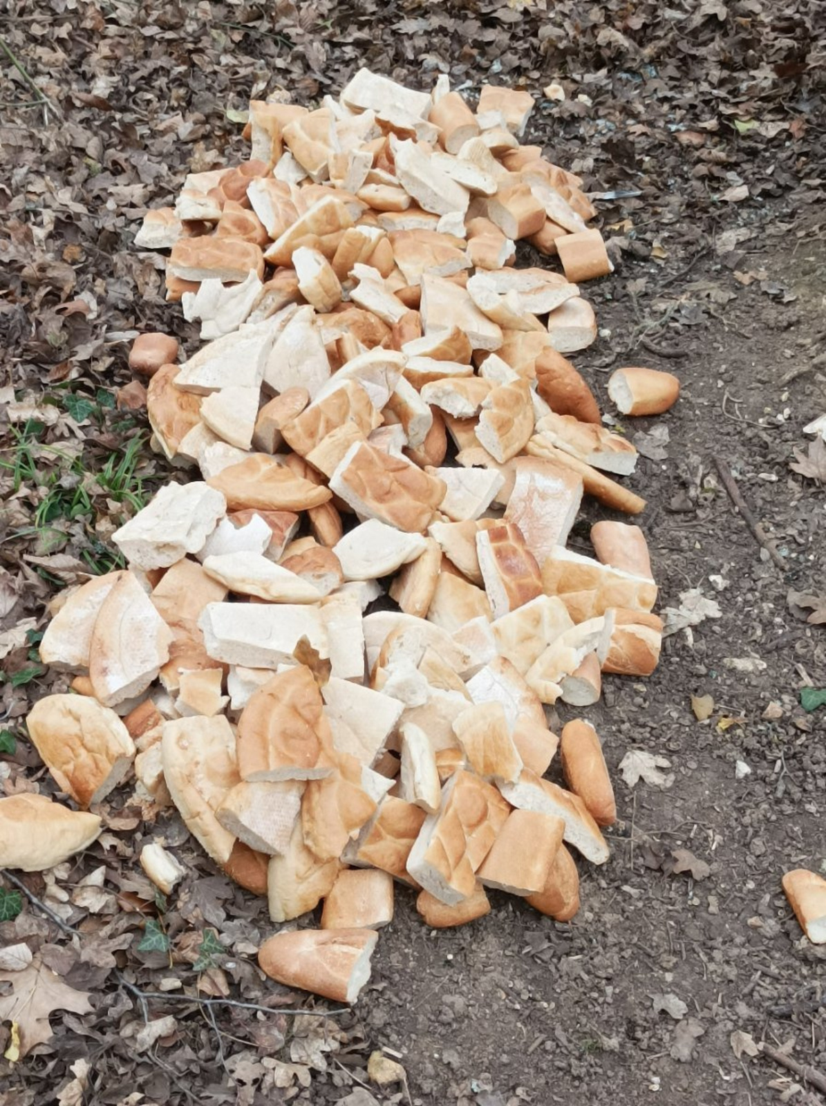 Dépôt de pains dans la forêt de Vernon, juste à proximité des jardins partagés du vallon Saint-Michel.
