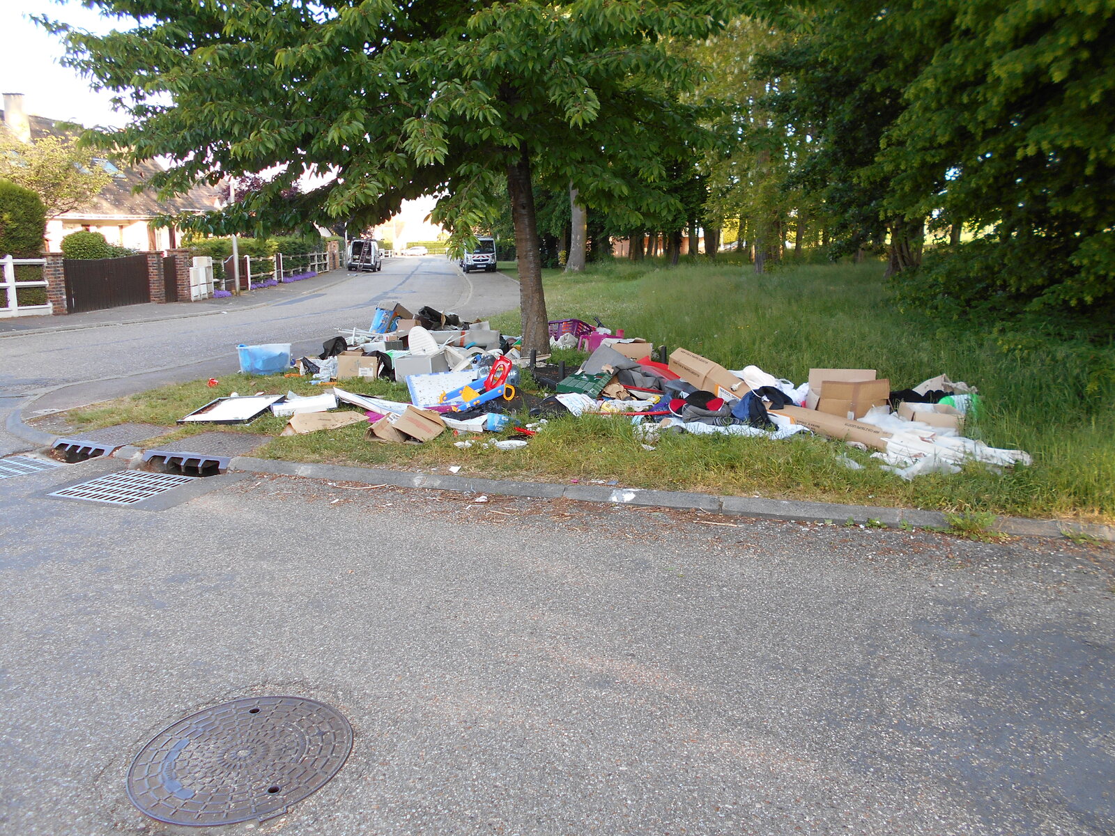 Pose de panneau d'interdiction de dépôt de déchets avec caméra et affichage des dates d'enlèvement des encombrants.