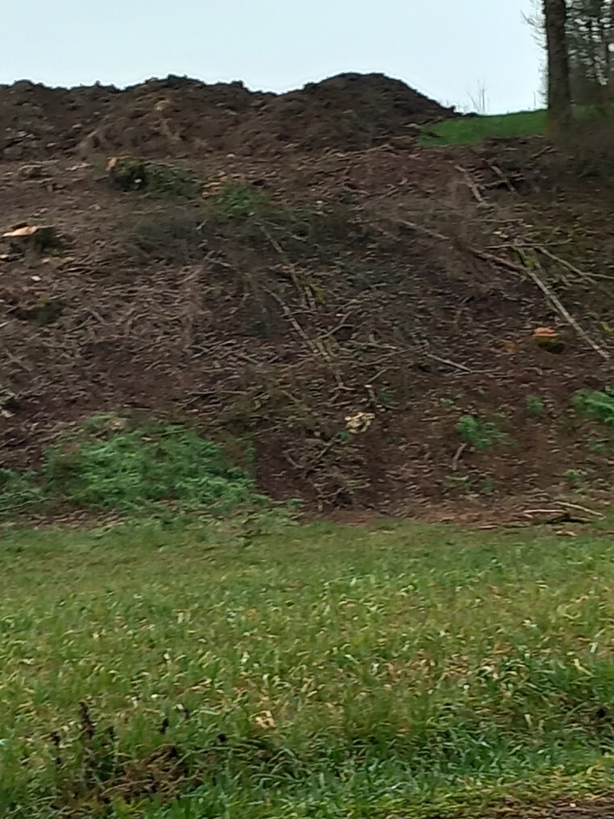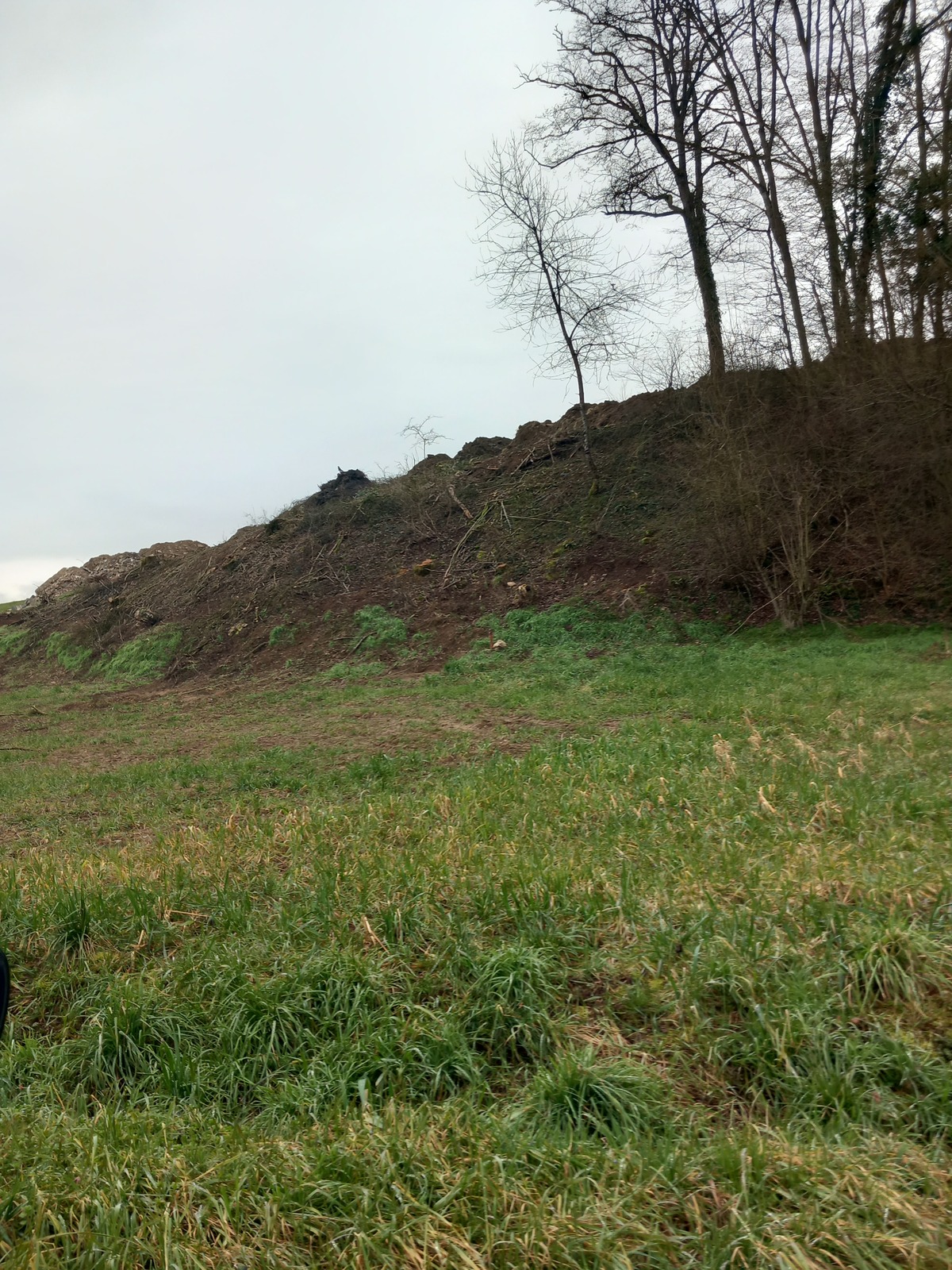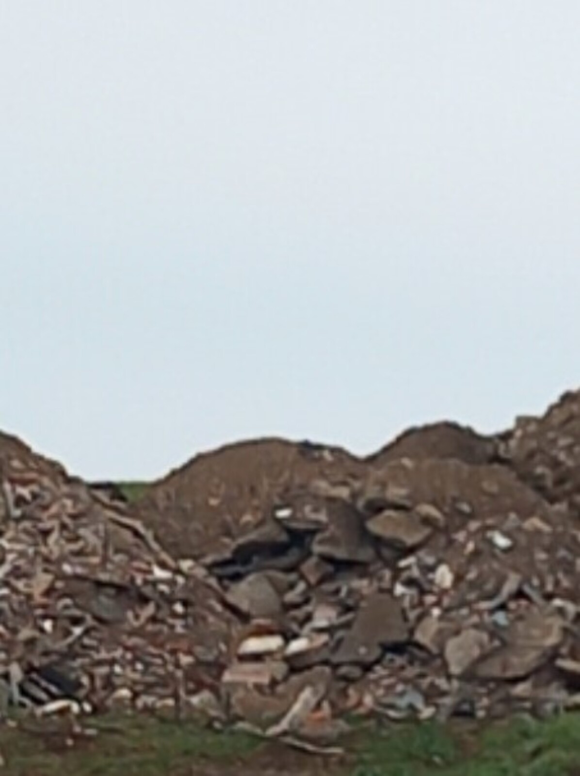 Modification de relief avec l'emploi de gravas divers ( construction ....) et de terre provenant tout/ou partie d'arasement de talus et/ou de curage de fossés en bordure de réseau routier (terre entreposée auparavant sur une aire communale).