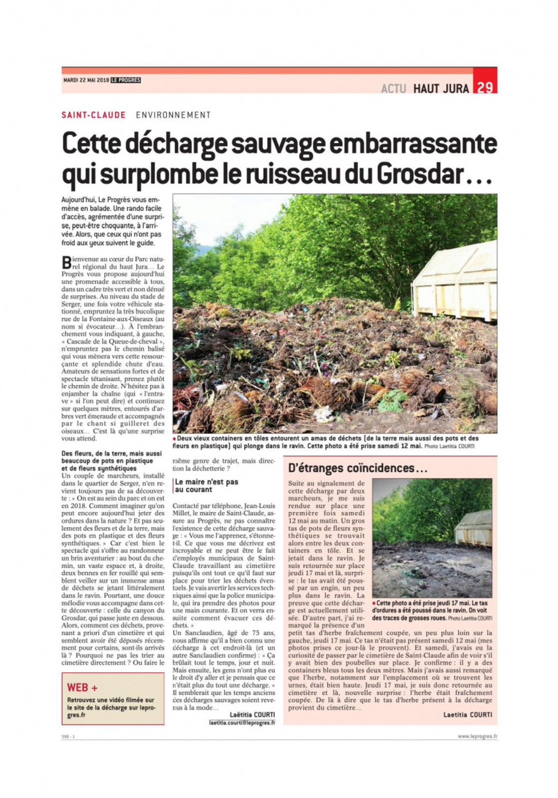 La municipalité assure depuis la date du signalement avoir fermé ce lieu et organisé la collecte des déchets végétaux du cimetière de Saint-Claude avec le SICTOM. La matière organique ainsi récupérée est désormais prise en charge pour un traitement en compostage à Allériot (71).
