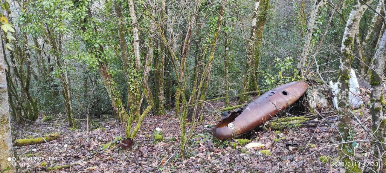 Des dépôt de déchets verts ont été fait récemment sur le dessus et cache partiellement le dépôt .