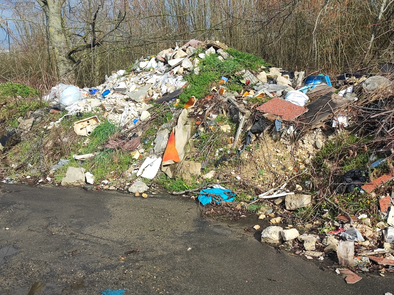 D'importants dépôts de déchets ont été constatés sur les bords d'un chemin agricole. Du fait de l'ampleur de ces dépôts, et de la régularité des apports de déchets, il peut s'agir d'une décharge illégale.