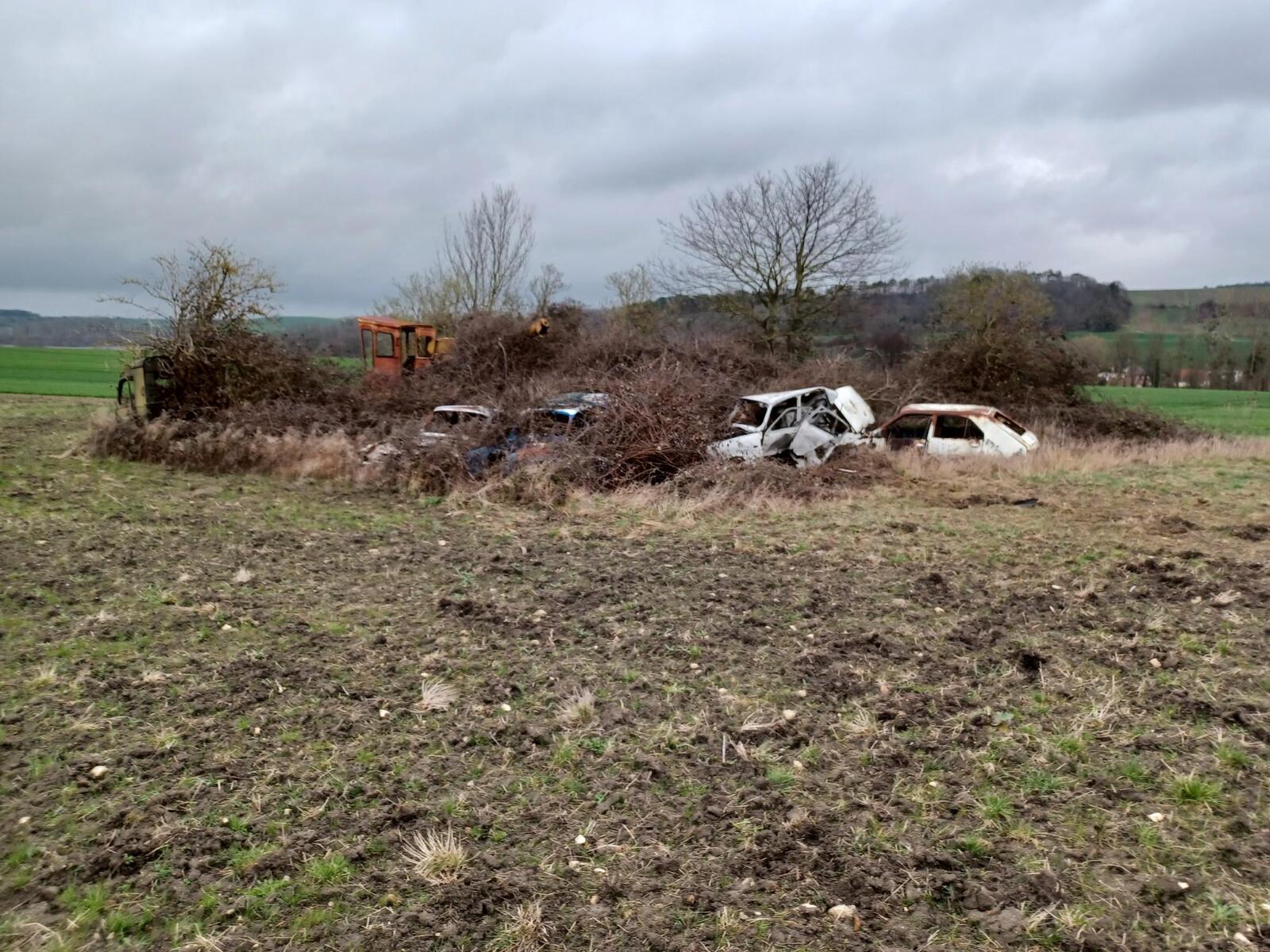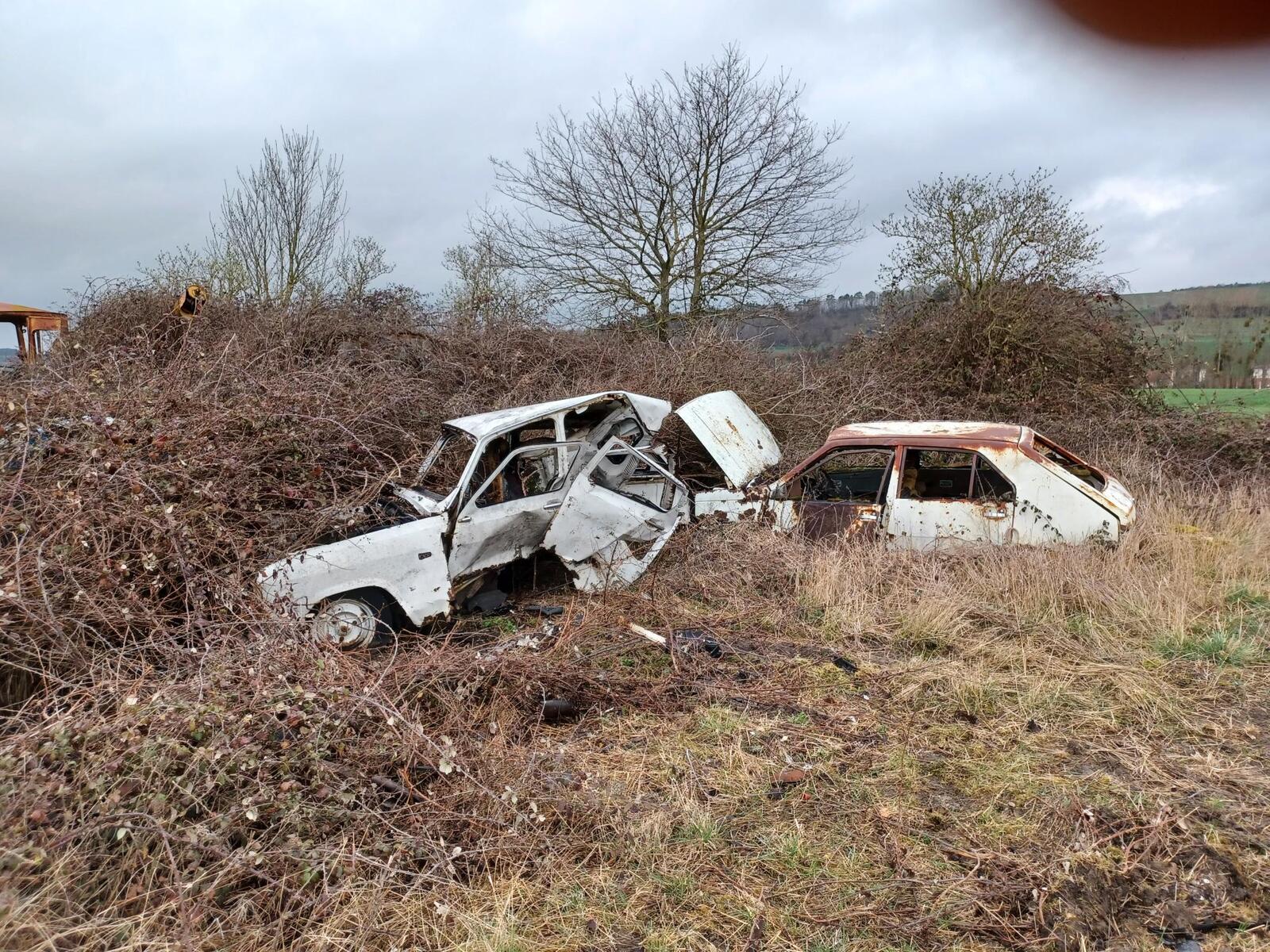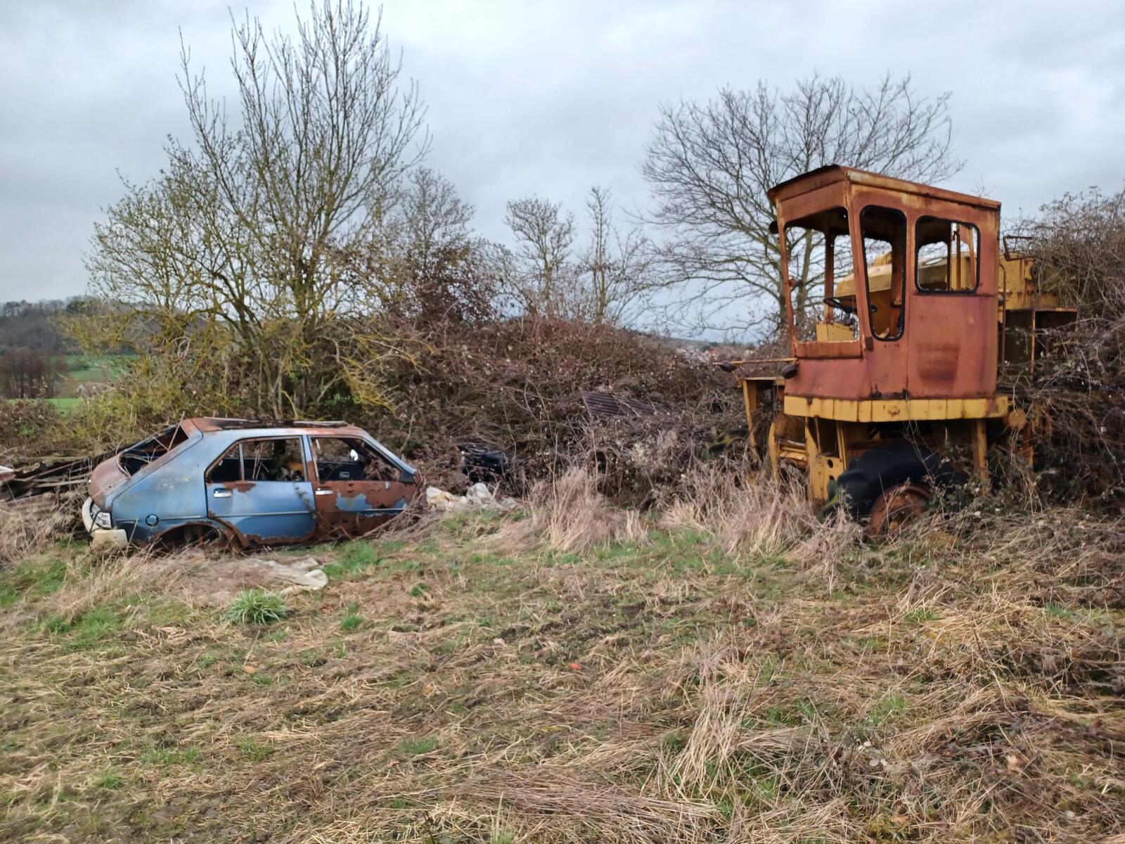 Ces carcasses de voiture doivent être ici depuis quelques temps.. Ces dépôts sauvage nuisent à l'image de la commune, et sont interdits en vertu de la réglementation du code de l'environnement.