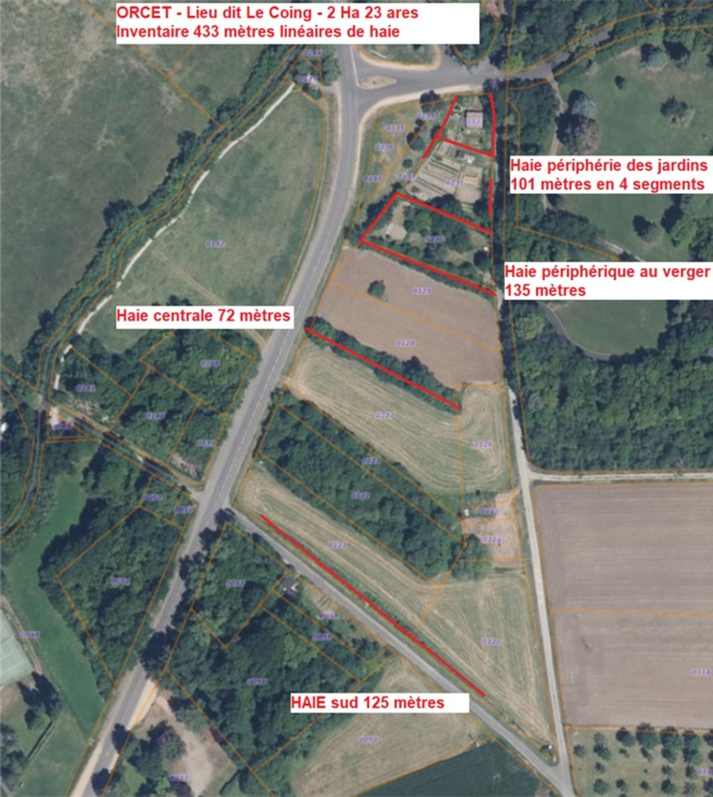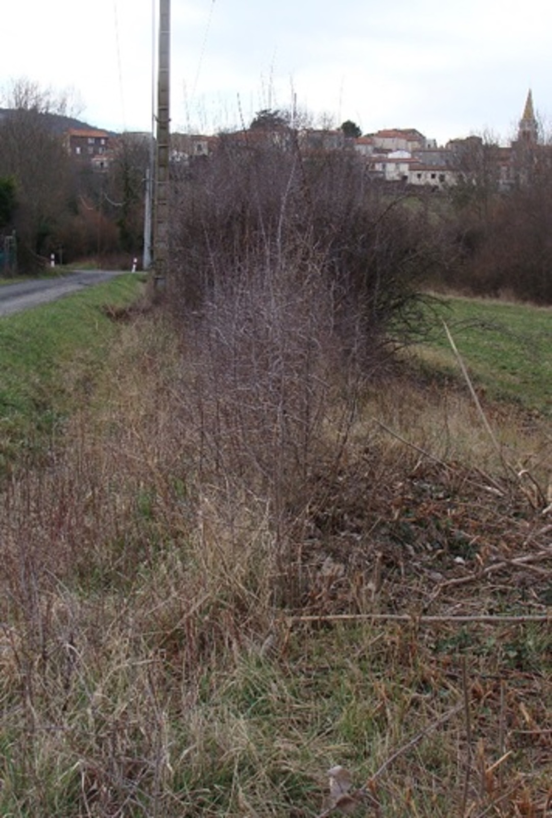 Haie longue de 125 mètres, en bord de fossé. Note de 26.5. En 2022 avant coupe au ras du sol elle faisait 4 à 5 m . Nouveau broyage partiel en Février 2023, mais forte capacité de rejet.