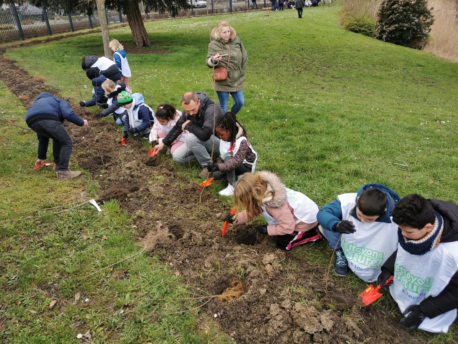 Plantation d'une haie diversifiée de différentes espèces locales issues de pépinières régionales (dans le cadre de l'opération "Plantons le Décor" avec le Parc Naturel Régional Scarpe-Escaut), plantations réalisée par les élèves des écoles de Beuvrages avec l'accompagnement des services techniques de la ville et le soutien financier de la Région Hauts-de-France