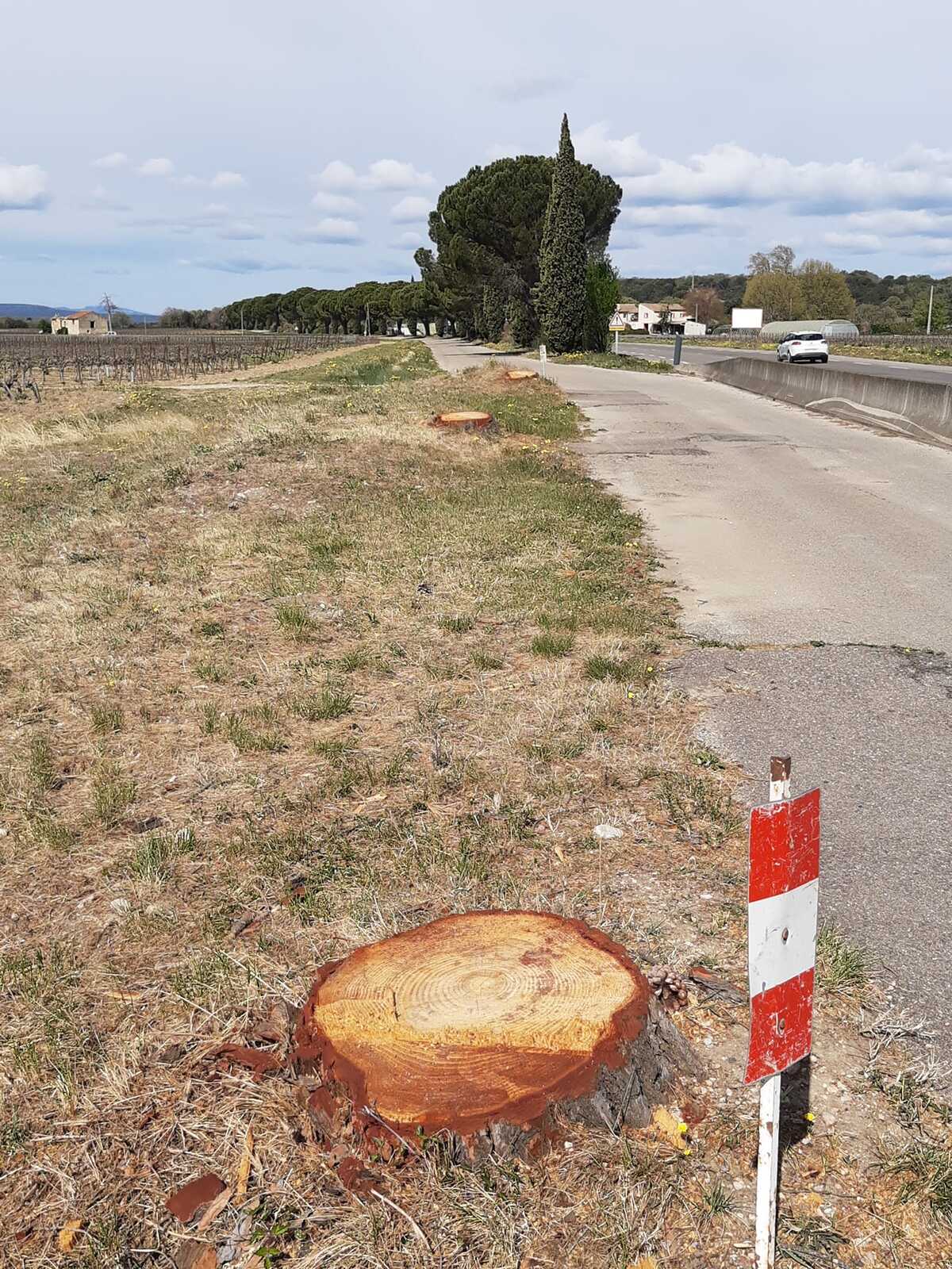 Coupe d'arbres en bord de route à Valréas.