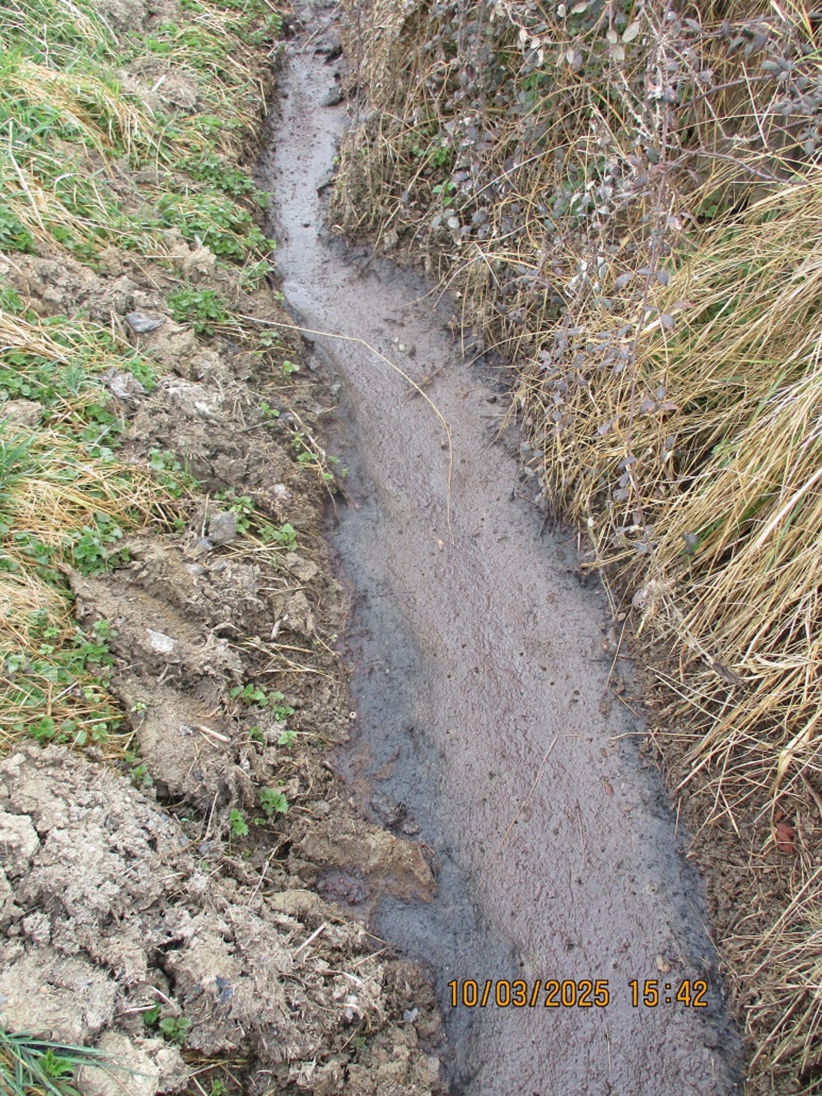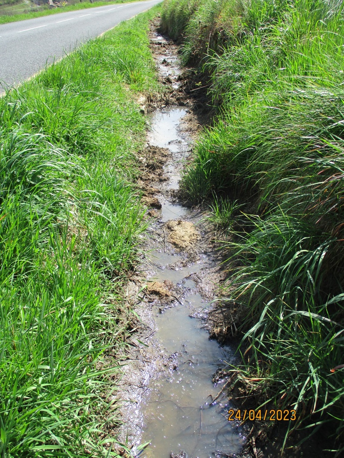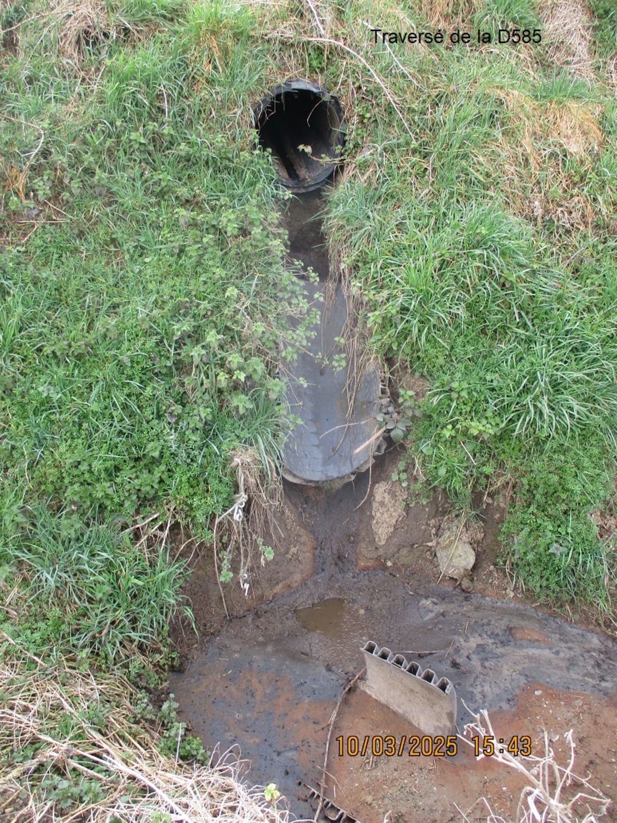 Relance faite par la sentinelle en 2025, de nouveaux écoulements nauséabond (en provenance des méthaniseurs) dans le fossé de la départemental D585 ont été observés.