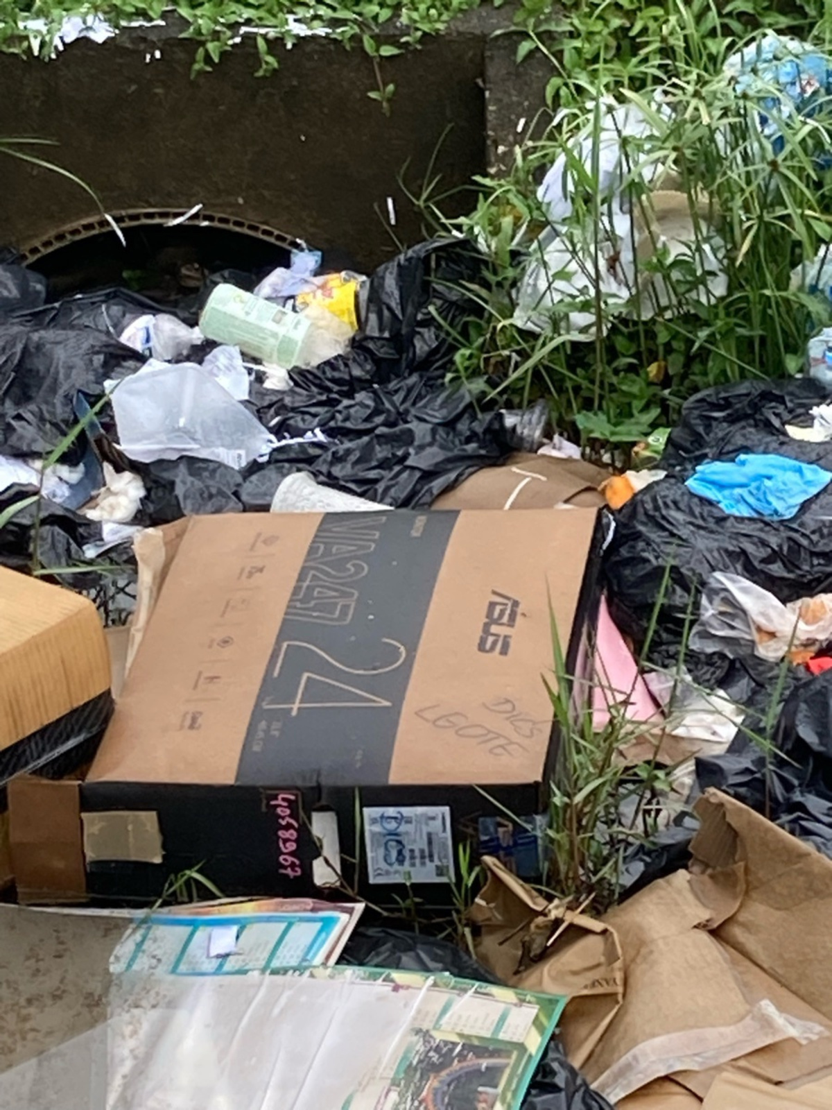 Un signalement a été effectué concernant des déchets présents dans un fossé d'eau pluviales, au niveau du chemin Sadecki à Cayenne.