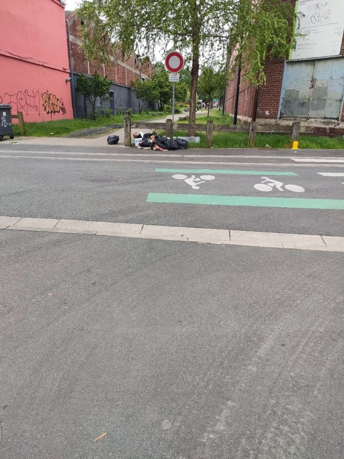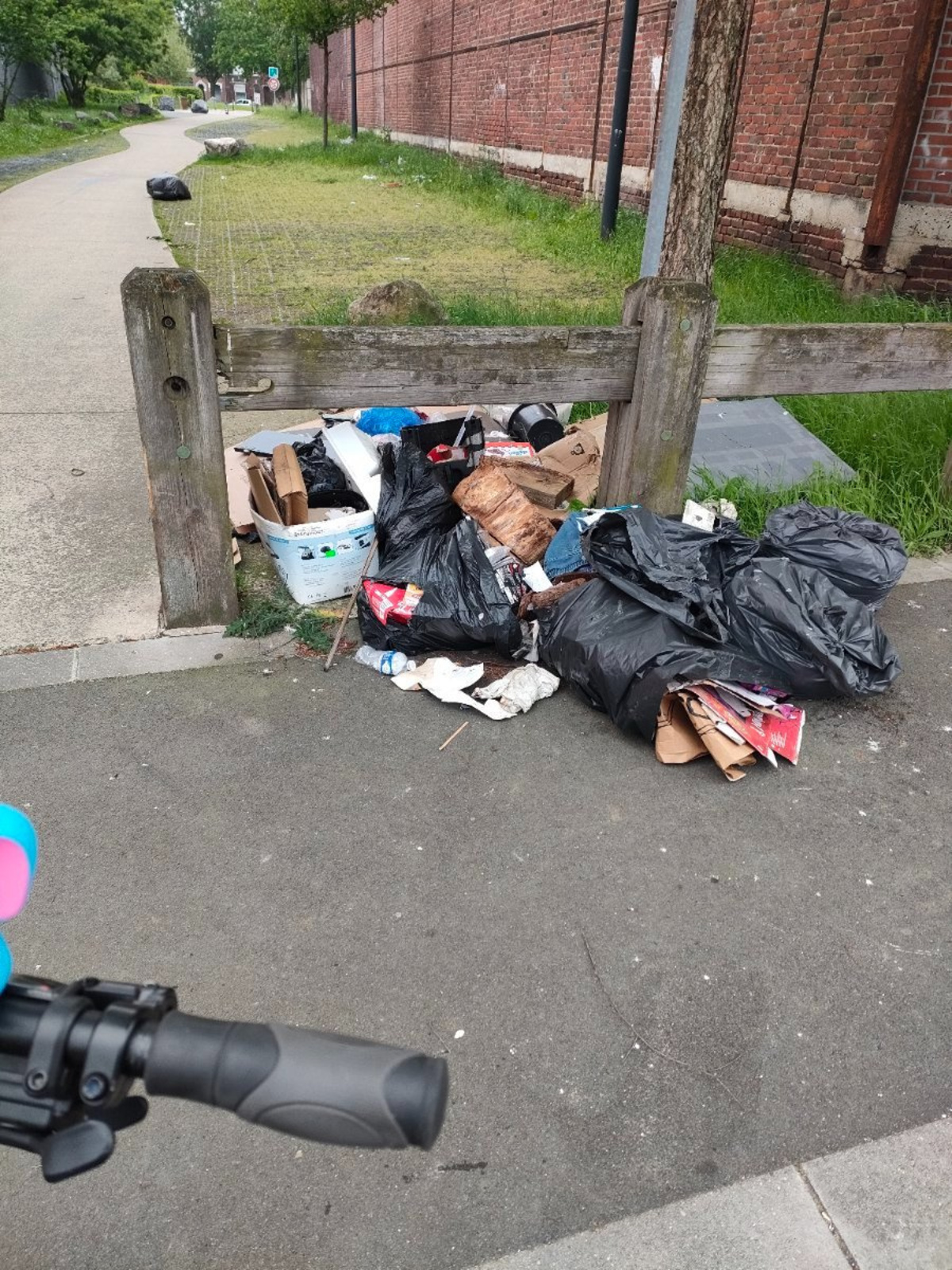 Dépôt sauvage constitué de plusieurs sacs poubelles remplis de déchets ménagers.