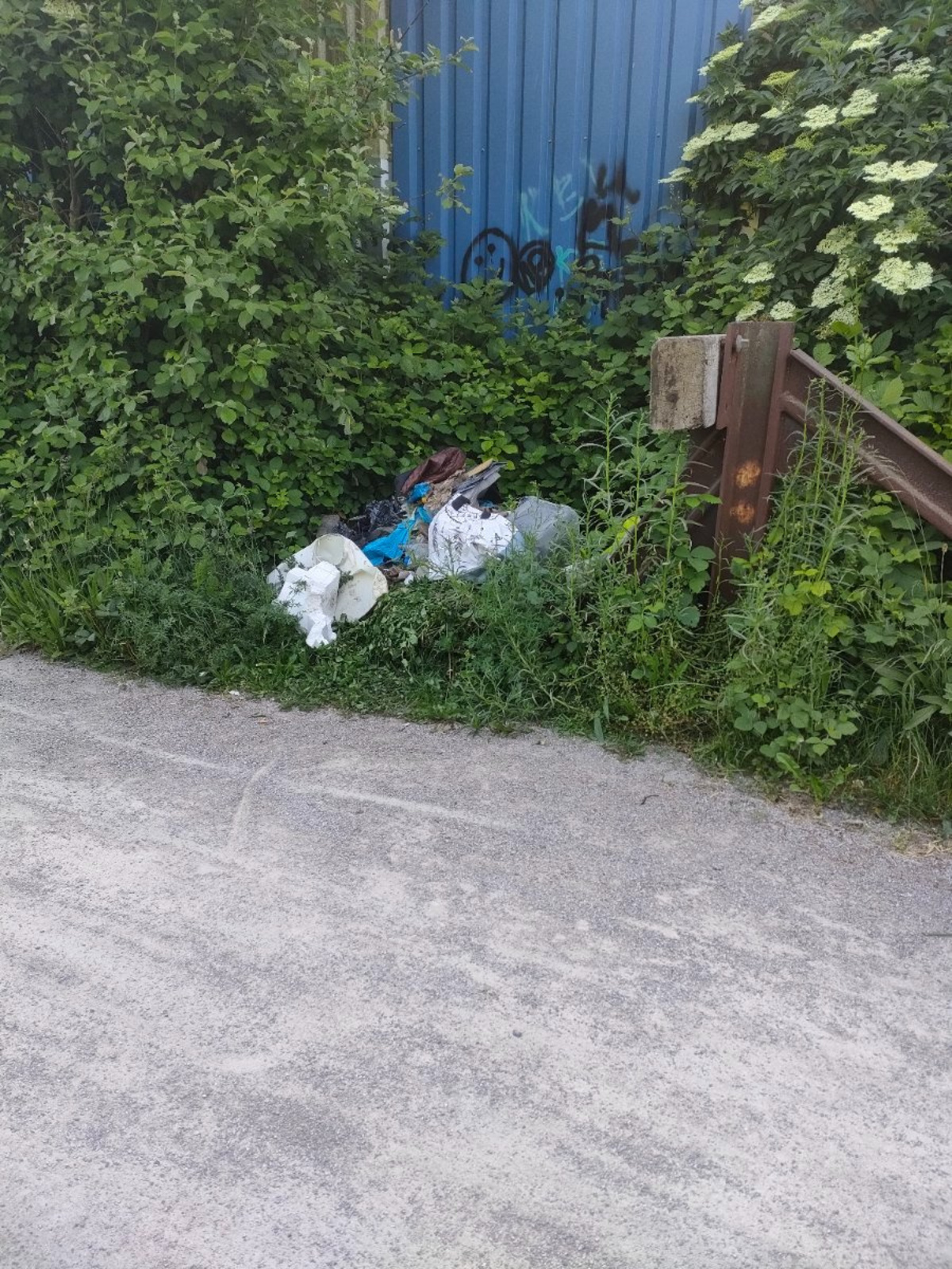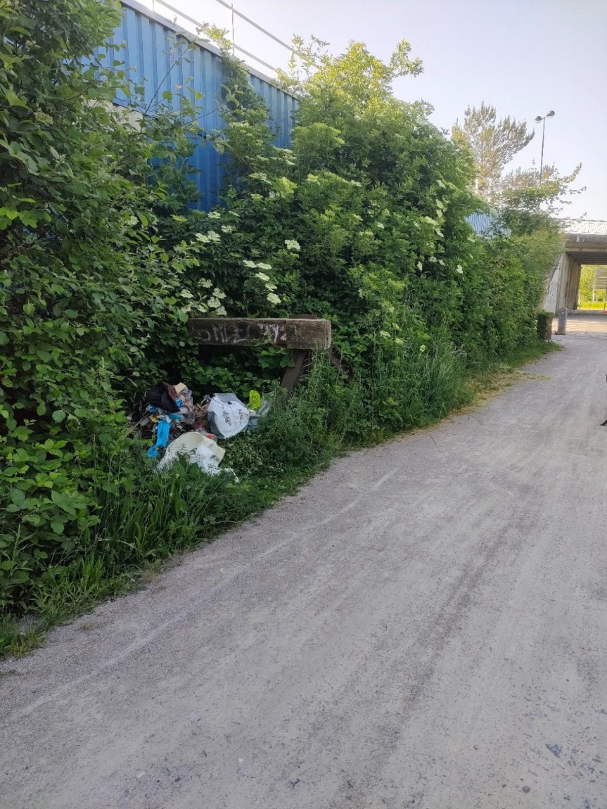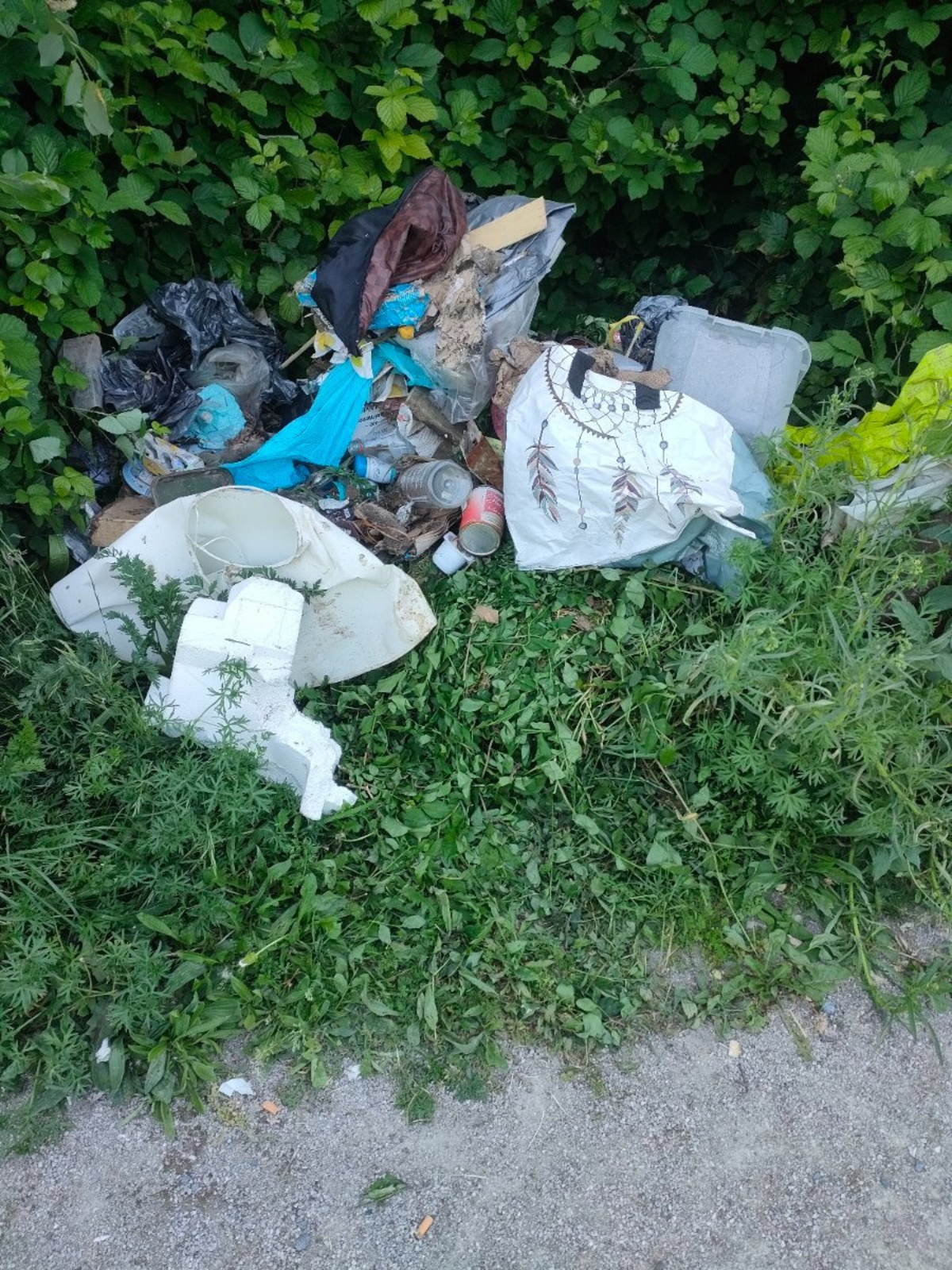 Dépôt sauvage constitué de plusieurs sacs poubelles remplis de déchets ménagers.