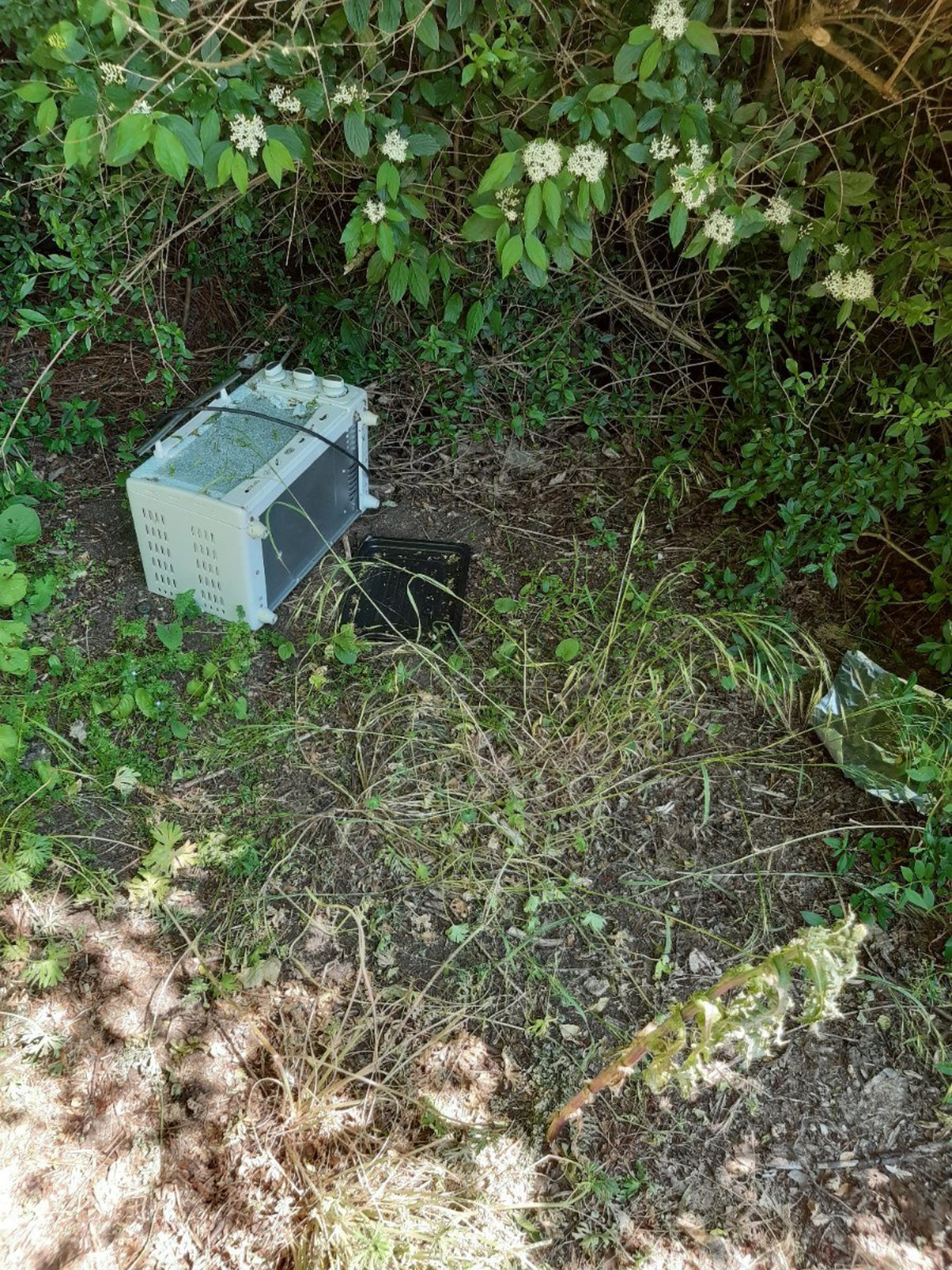 Appareil électroménager (four à micro-onde) laissé à l'abandon en pleine nature sur le territoire de Marcelcave. Le dépôt a été retiré dans son entièreté et la zone est maintenant nettoyé.