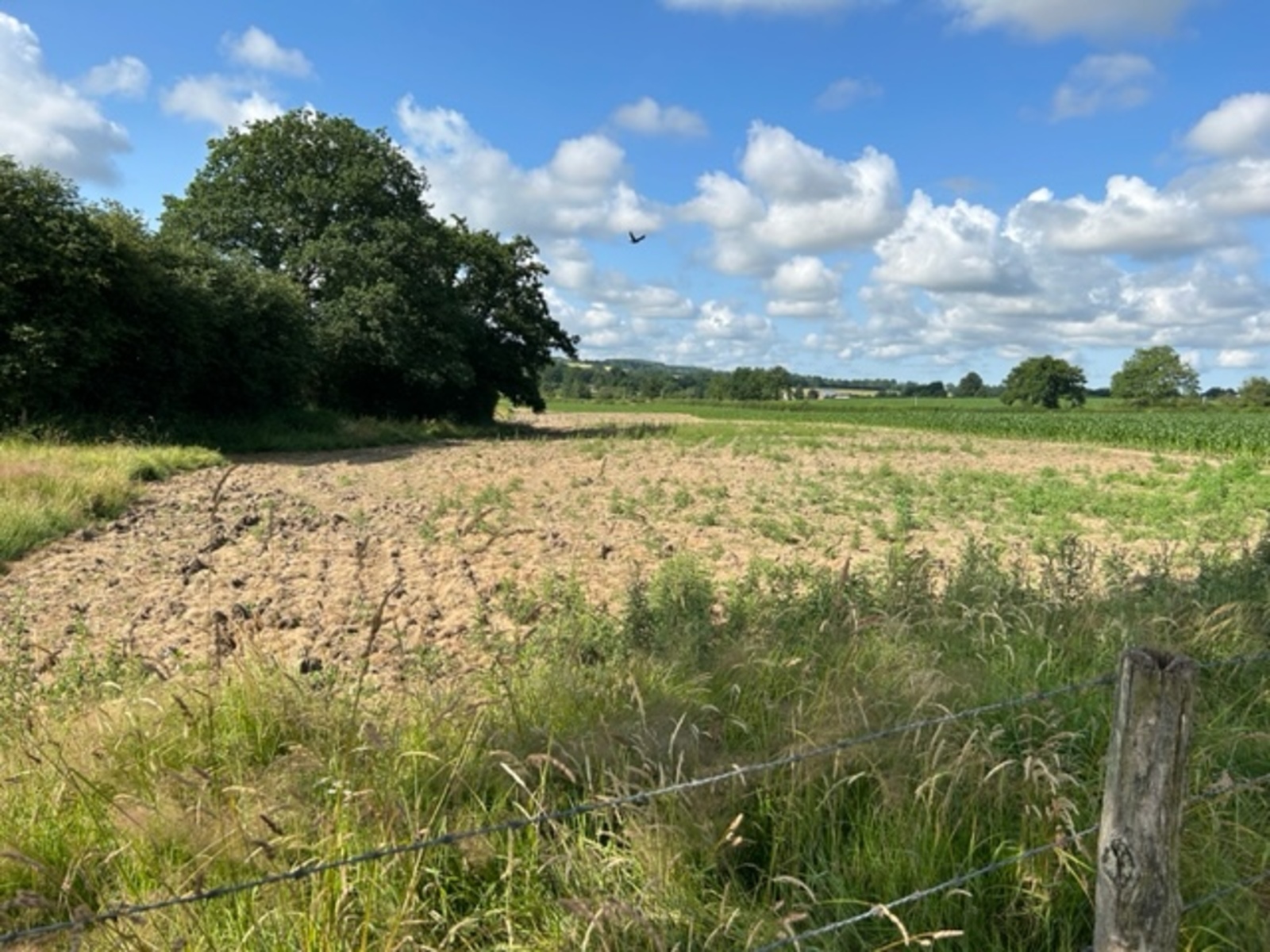 Transformation d'une prairie permanente bio en culture de maïs à l'occasion d'un changement d'exploitant, au cours du printemps 2023. A cette occasion, plusieurs haies sont détruites et plusieurs arbres sont dessouchés, tandis que des drains sont mis en place pour assécher la parcelle. Celle-ci présente toutefois les caractéristiques d'une zone humide au vu de la prélocalisation des zones humides de la DREAL Pays de la Loire et des données de la carte pédologique du département de la Mayenne.